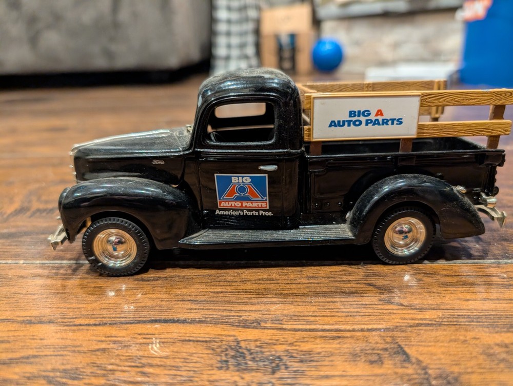 T his ERTL diecast truck in 1/25 scale is a perfect addition to any collection. The black Ford pickup truck from 1940 is a detailed replica with authentic design elements. Truck is part of the 12th series and is a great find for any toy and hobby enthusiast.