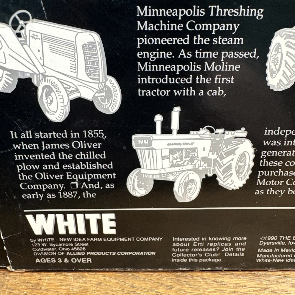 The ERTL 1/64 White American 80 Series toy tractors were released in 1990 as part of the White American Series. These vintage toys are age-appropriate for collectors aged 8 years and up and were manufactured in Mexico. The set includes models from Minneapolis Moline, Cockshutt, Oliver, and White brands, making it a desirable addition for vintage toy enthusiasts. Comes in original box. Pre-owned condition. Box has some damage. See photos.