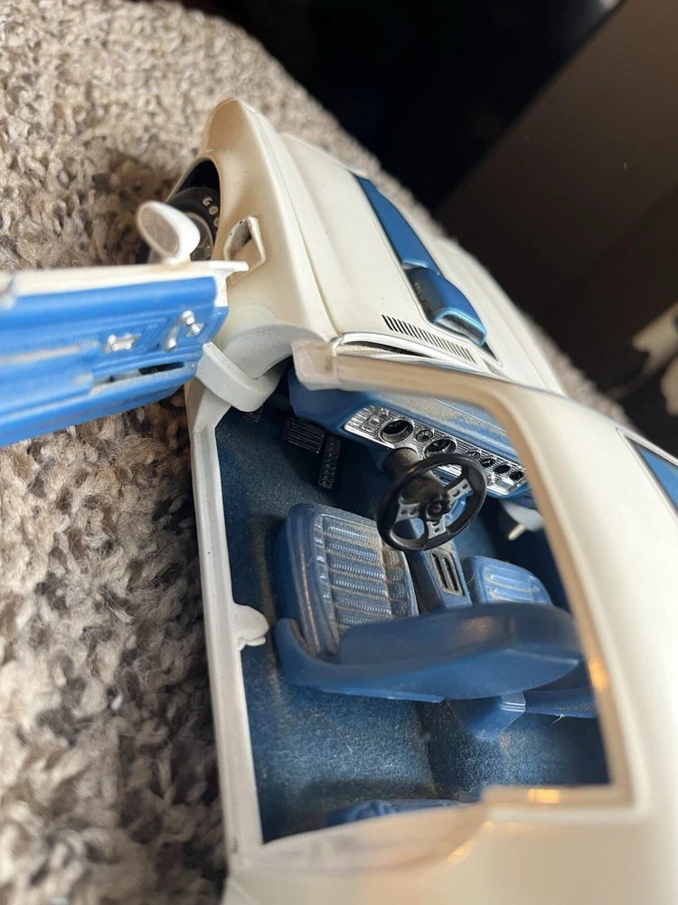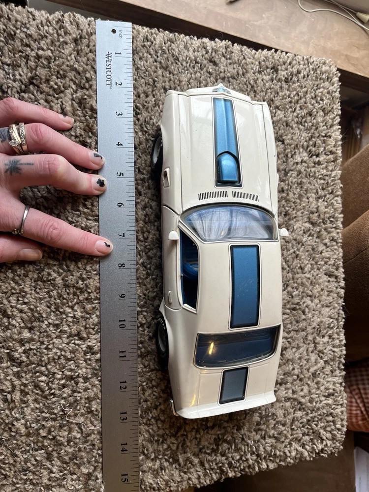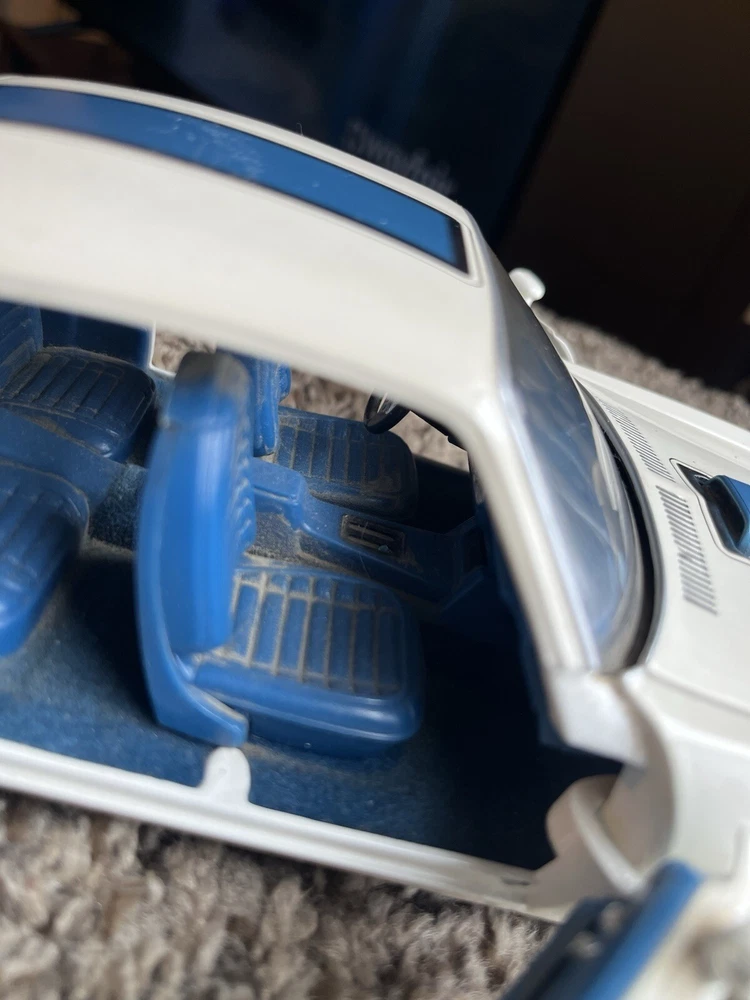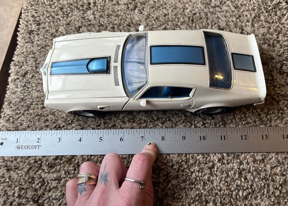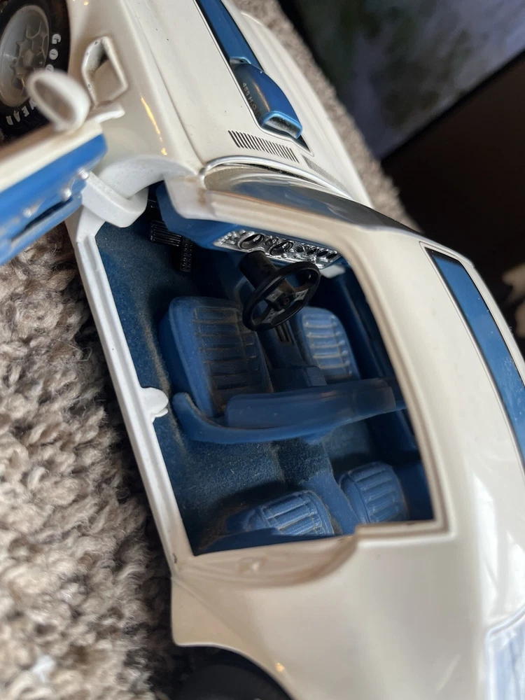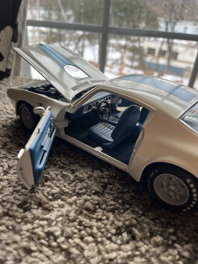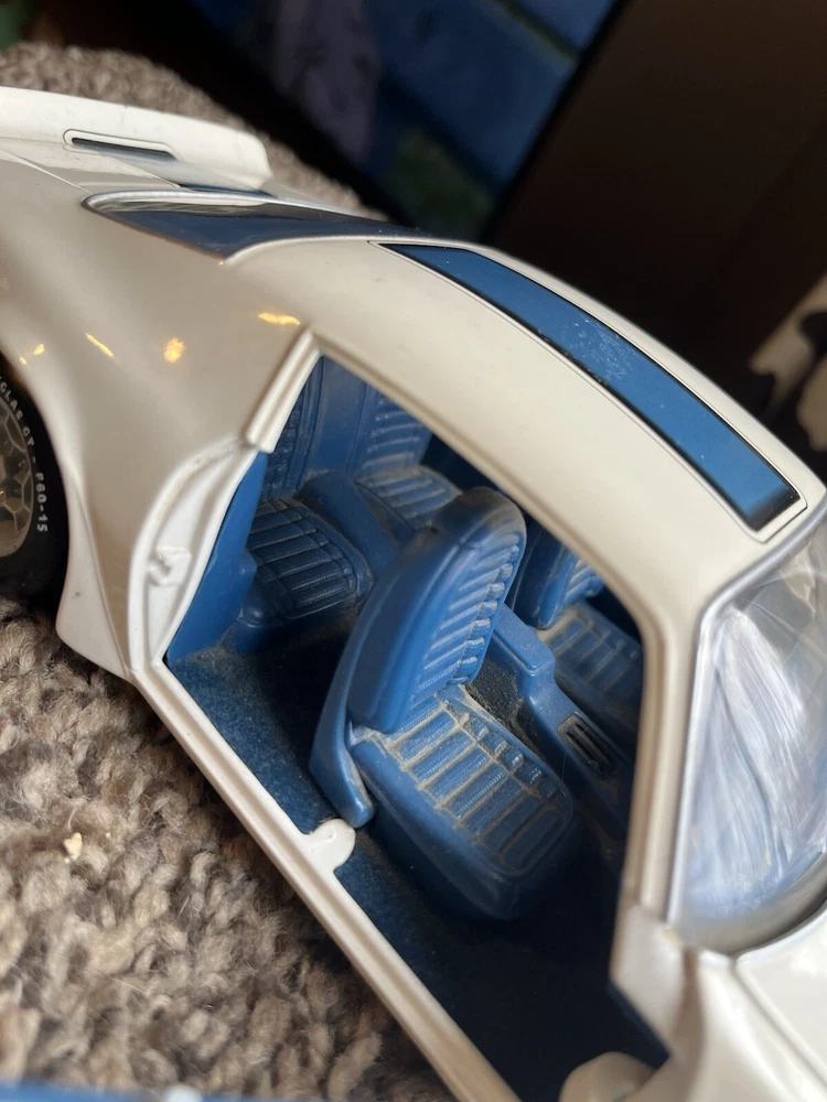 ERTL 1/18 1972 Pontiac Trans Am Die Cast 455 H O In original condition has nicks and scratches in the paint and it HAS NOT been cleaned. Please note from photos that one of the front license plate posts is broken and the shifter has been broken off. All the doors work the hood opens as it should and the steering wheel turns the front wheels as intended. NO BOX INCLUDED
