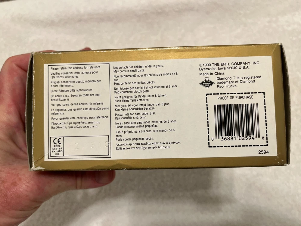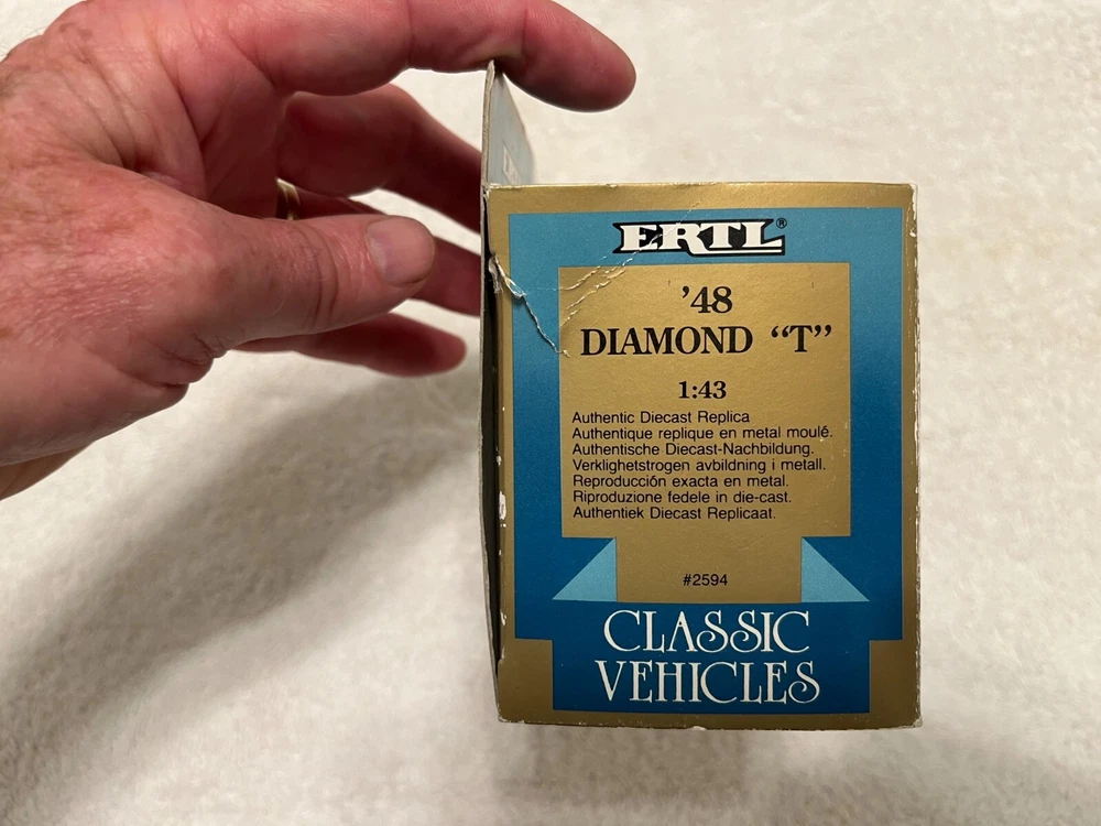 Ertl Diamond "T" 1:43 diecast replica with box. The truck is wired in the box so maybe it's never been removed but the box shows wear and certainly has been opened roughly. Please refer to images. Glad to combine freight when possible, please message me prior to paying for an invoice with combined freight amount. USA shipping only. Message any questions or for more images. Thanks for looking!