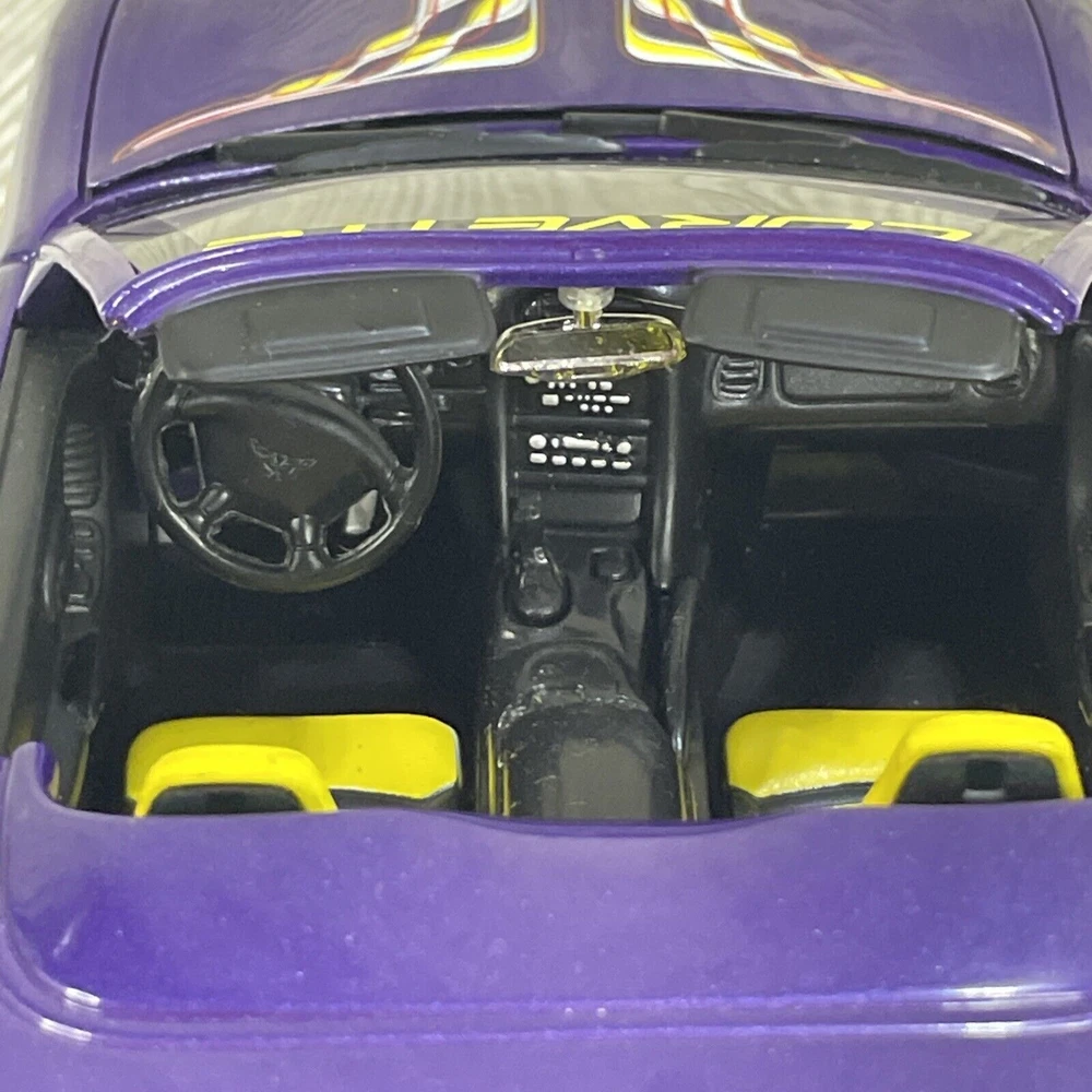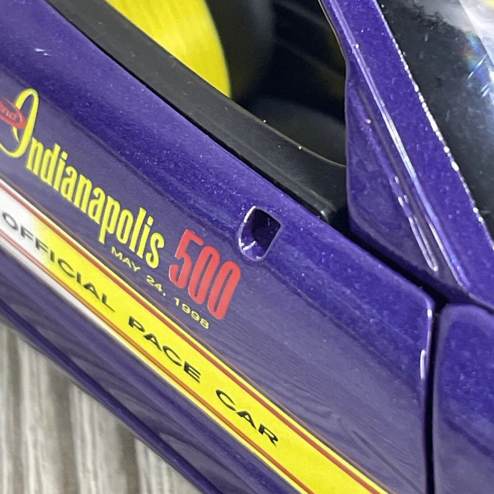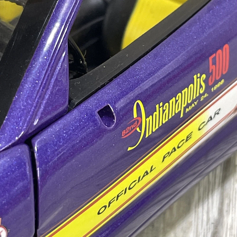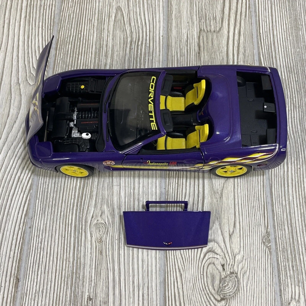 For sale is a limited edition 1:18 scale diecast model car produced by Ertl under the American Muscle series. Chevrolet Corvette. 1998 Indy 500 race pace car. Purple in color. Diecast. Good condition, minor wear consistent with age and use. Missing driver and passenger side mirrors. Trunk is loose, but sits in place very well. See photos.