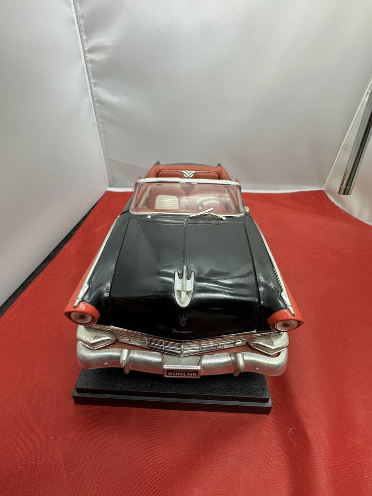 This ERTL American Muscle diecast model of a 1956 Ford Fairlane Sunliner Convertible is a must-have for any car enthusiast or collector. The 1:18 scale model features a red and black color scheme, with intricate detailing that make it a standout piece in any display. Parts missing The limited edition model is made from high-quality materials and is recommended for adult collectors. The Fairlane Sunliner model is part of the ERTL American Muscle series and is a great addition to any collection.