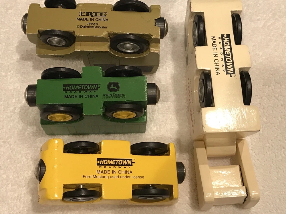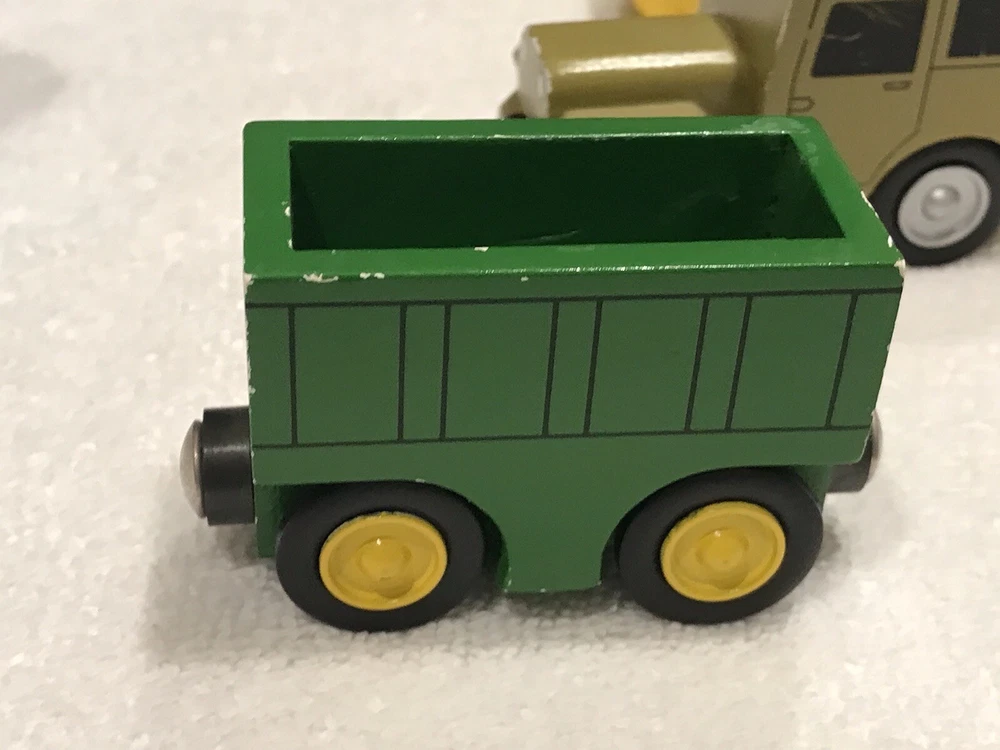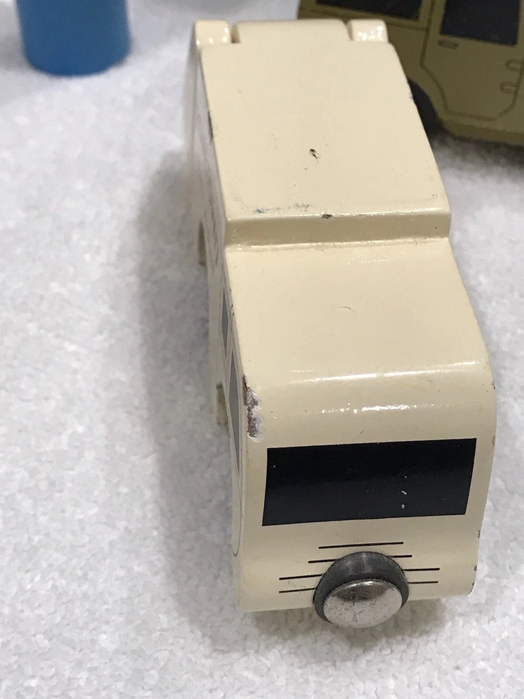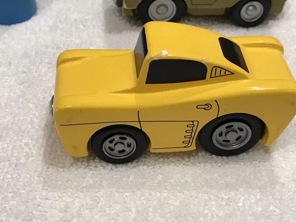Various wooden toys DOES NOT INCLUDE THE BLUE WOODEN BLOCK ONLY FOUR VEHICLES. Toys are in played with condition, please view photos These items are not new, perfect or in mint condition This is the item you will receive, and it may need a wash, have stains, dirt marks, holes, nicks, chips, paint loss, scratches odors, fading, imperfections, etc. I am not the original owner, and I have no idea of the item's prior life. All items sold as found These are used toys which are not new, item is in used poor condition. I DO NOT ACCEPT RETURNS, PLEASE REVIEW ALL PHOTOS THAT SHOW CONDITION. THANK YOU. PLEASE CONTACT ME IF YOU HAVE ANY PROBLEMS. This is not in pristine condition and not for collector looking for perfection Thanks for looking Yes, I will combine shipping whenever I can, please message me if you want to purchase more than one item. I do not have a specific return policy, but please let me know if there is any problem with your purchase and I will work with you to resolve it. Buyer always pays return shipping fees. IF I OR EBAY AGREE TO A RETURN BUYER ALWAYS PAYS RETURN SHIPPING FEE AND RETURN REFUND AMOUNT WOULD BE FOR PURCHASE PRICE ONLY (SHIPPING COST NON- REFUNDABLE)