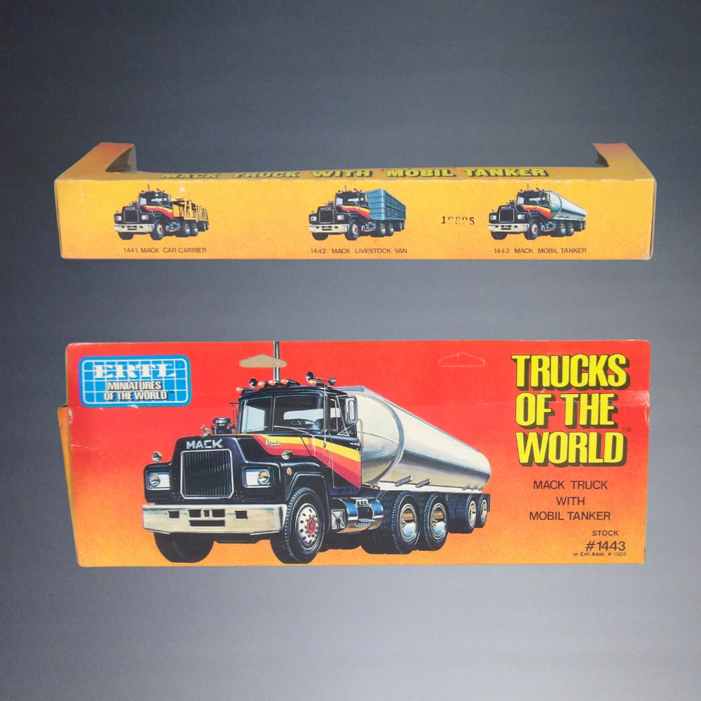 Vintage Ertl Miniatures of the World Die Cast Vehicle Trucks of the World Mack Truck with Mobil Tanker 1:64 Scale Stock #1443 New in package (unpunched card), small tear in box and has no bearing on vehicle. Most items in our shop are preowned, and many are not brand new unless we state so. Most are from estate sales, auctions, or private collections. The items may show minor age related wear and/or minor flaws consistent with age and use. Please check photos carefully as they are part of the description, we do our best to describe any imperfections. Feel Free To Ask Any Questions We Combine USA Shipping PLEASE NOTE OUR STORE BUSINESS POLICIES: PAYMENT: Payment is required within 3 days of purchase (Auction or Buy it Now). If we do not receive a payment within this timeframe, we will cancel the order based on "The Buyer Did Not Pay In Time Allowed" and the item will be relisted. SHIPPING: We take special care when packaging each and every item we sell. Packages are shipped the same or the next day. We do not ship on weekends or on US public holidays. Shipping notifications are updated thru the eBay system so you can track your package easily. RETURNS: We accept returns for items not as described or if you receive the wrong item. Return shipping will be paid by the buyer and is non-refundable. It is very important to us that you are happy with your purchase so if you have any problems or concerns with your order, please feel free to contact us to discuss. We are here to help and resolve any issues. INTERNATIONAL BUYERS: Welcome! Customs duties and taxes are the buyers responsibility. FEEDBACK: We maintain high standards of excellence and strive for 100% customer satisfaction! We greatly appreciate your POSITIVE feedback. Please do NOT leave negative or neutral feedback without any contact. We will leave you 100% feedback after you have paid and received your item. We will highly appreciate 100% feedback left for us. If for any reason you are not happy with your purchase, please contact us to discuss before leaving negative feedback. Customer service is our #1 priority and we are always willing to work things out.
