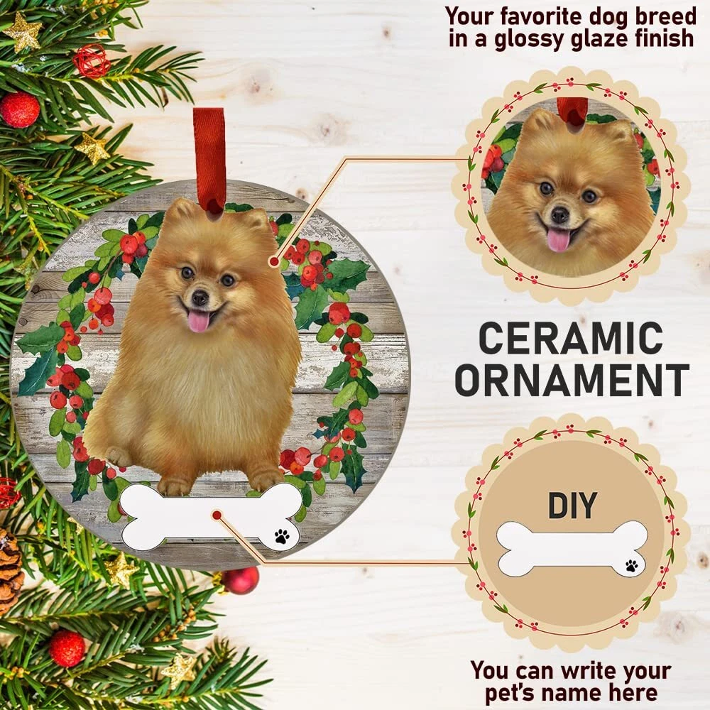 IMPORTANT NOTE - The seller does not write your name. It is a DIY ornament. An E&S Pets exclusive. Our Pomeranian ornament is made from the finest quality ceramic and is printed with the best 3D printer. With a red ribbon supporting, this adorable dog ornament is sculpted, casted in a very high quality ceramic and is printed with a glaze finish. The perfect Canine gift for your mother, father, sibling or any loved one! It's the perfect and fun way to introduce your pet in a holiday decoration. Personalize the ornament by writing your name or the year on the bone of the ornament. The perfect personalizable gift for Christmas! The Artwork For These Ornaments Were Done By One Of The Best Artists In The World. These ornaments are the perfect gift for your loved ones for Christmas. You may hang it on your Christmas tree or your wall or anywhere you prefer to. These ornaments come with a red satin ribbon which can easily hang on to anything. If you have a Pomeranian You owe yourself to buy a pair of these ornaments. More popular Cat and Dog breeds are also available from us. Ranging from Tabby, Siamese, Calico, French Bulldog, Weimaraner, Beagle, Dalmatian, Chihuahua, Dachshund, "Yorkie" Yorkshire Terrier, Pointer, Border Collie, Mini Schnauzer, Cavalier King Charles Spaniel, , Boston Terrier, Boxer, Golden Retriever, Siberian Husky, Black Labrador, Maltese, Pit Bull, White Poodle, Pug, Rottweiler, Doberman, Puggle Et cetera. Please check out our store (E and S Pets) for more information. If You Are Satisfied With Our Products And Services, Please Leave Your Feedback. Your Satisfaction Is All We Strive For! Your Voice, We Are Listening! E&S PETS EXCLUSIVE POMERANIAN GIFTS FOR ALL OCCASIONS : If You're Looking For A High Quality Printed With A Glazed Finish Pomeranian Ornament, With An Adorable Pomeranian On The Front Then Look No Further. This Is The Perfect Gift For A Pomeranian Owner. Happy Holidays From Your Favorite Pet Dog! PERSONALIZED : You Can Personalize And Write Your Loved One’s Name Or Year On The Ornament’s Bone. - It Is A DIY Ornament. The Seller Does Not Personalize it. SHOW OFF YOUR POMERANIAN AS A HANGING ORNAMENT : The E And S Pets Ornament’s Artwork Is Done By One Of The Best Artists In The Country. These Ceramic Ornaments Have Lifelike Details Of Your Favorite Pomeranian. The perfect Ornament To Show Off To Your Friends And Family. THE PERFECT XMAS GIFT : The Ornament Comes With A Red Ribbon Which You Can Hang On Your Christmas Tree And Cherish Your Favorite Pet Pomeranian ; You Will Forever Remember This Memory.They Will Be Perfect For Decorating Your Home And Become Part Of Your Holiday Tradition. DURABILITY : They Are Durable And Long Lasting. A High Quality Lifetime Product Which Is Made From Designer Porcelain With Sublimation Coating On The Front Side, And Is Crafted And Printed With The Finest Art Work Of Your Favorite Pomeranian. HELP SAVE A SHELTER PET : *Part Of The Proceeds Of These Animal Ornaments Support Animal Shelters To Find New Homes For Pets In Need.* WE TAKE PRIDE IN OUR WORK : - 100% Satisfaction Guarantee - Your Satisfaction Is Guaranteed. If You Are Not Completely Satisfied With Your Purchase, We Will Refund Your Money. No Questions Asked!