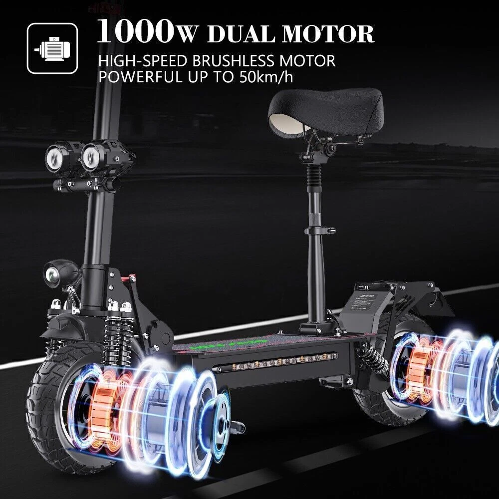 ES10 Folding Electric Scooter 2000W 48V 20Ah 31Mph Dual Motor 10in Off-Road Tire
