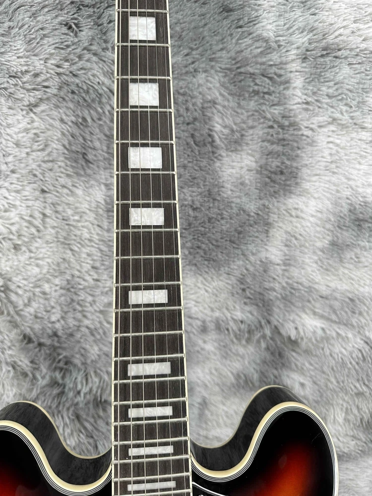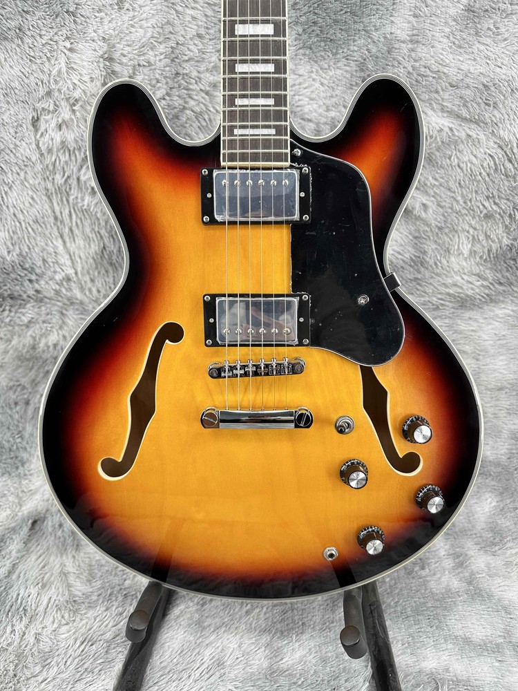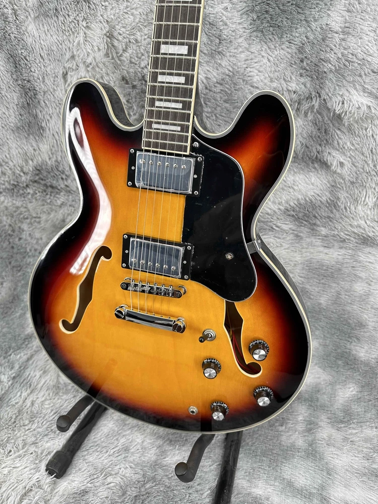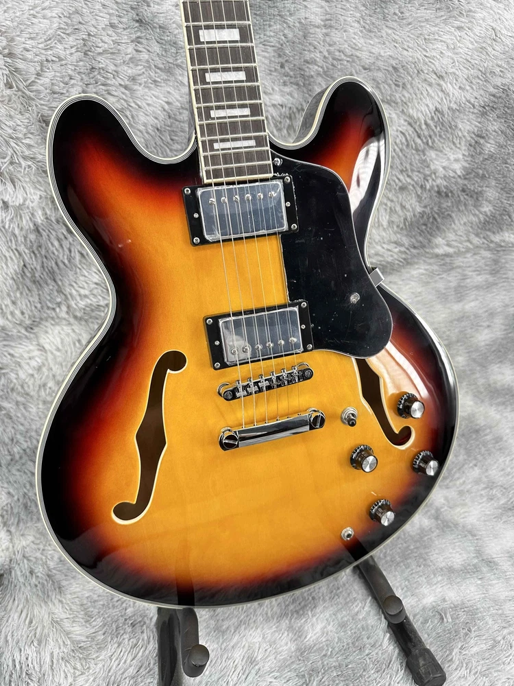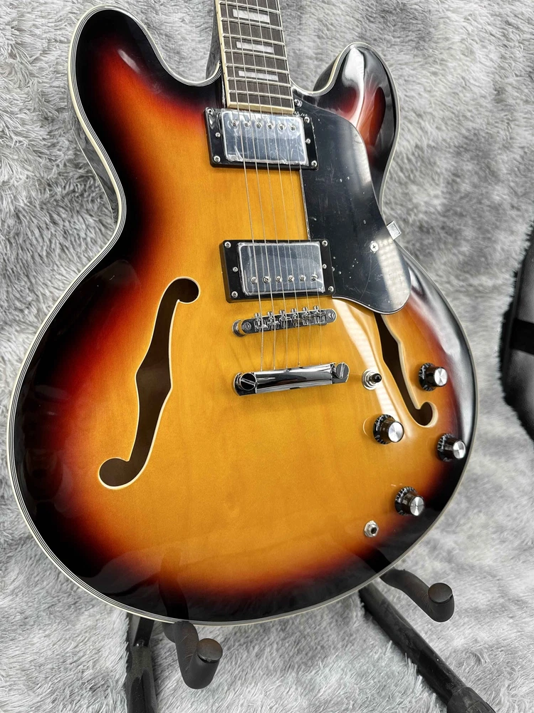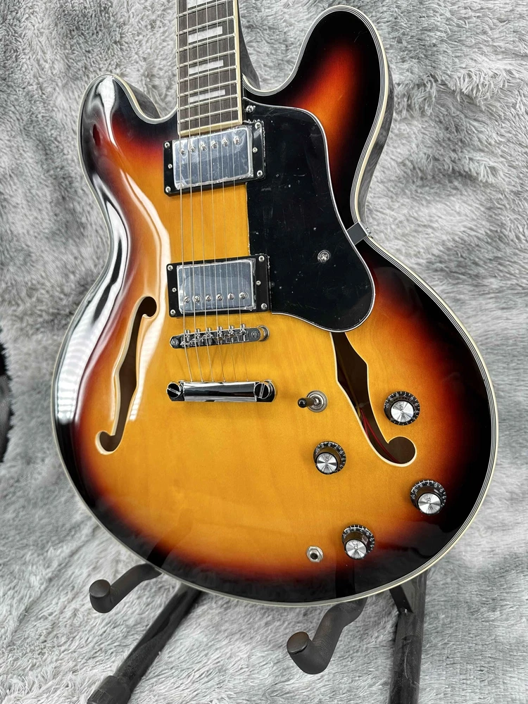 1. This ES-335 semi-hollow is a dream to play! The 3TS finish looks stunning, and the chrome hardware adds a classy touch. The HH pickups deliver rich, warm tones perfect for blues, rock, or jazz. Lightweight yet resonant, it feels premium in hand. The setup was flawless right out of the box—no fret buzz, smooth action. The seller’s professionalism shines through with great communication and care in packaging. If you want pro quality without breaking the bank, this guitar is a steal. Highly recommended for players who crave vintage vibe with modern reliability!