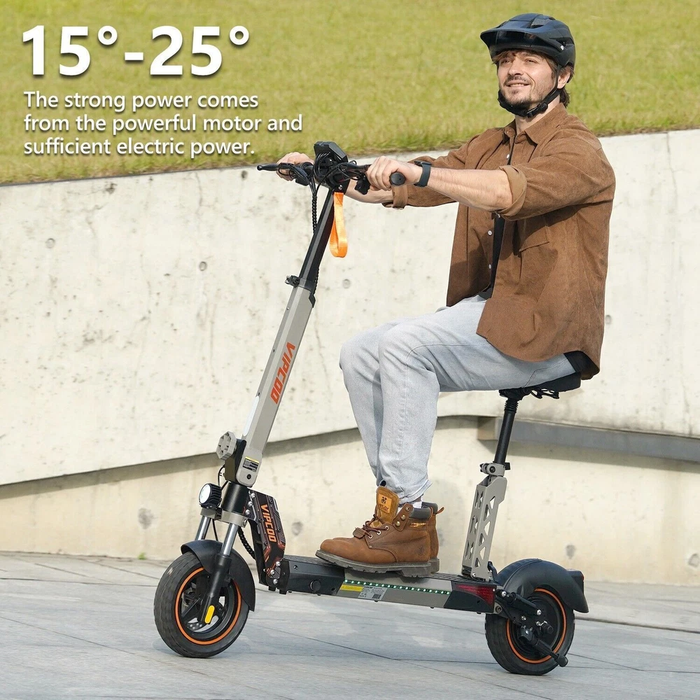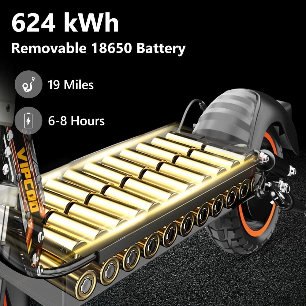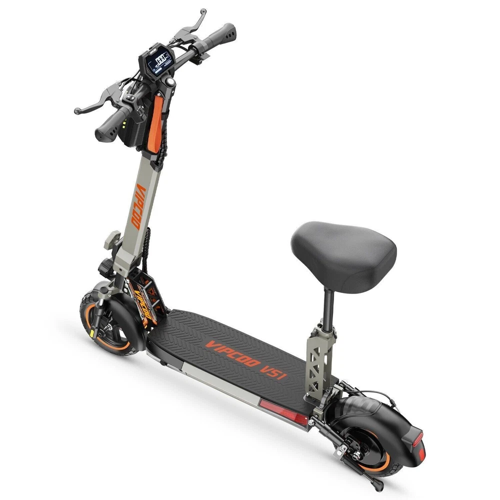 VS-S Electric Scooter, 700W, 28mph, 19miles, Folding Commute eScooter Fast Speed US STOCK Upgraded Electric Scooter: The VIPCOO VS-S electric scooter can speed up to 28 mph, travel range of 45 miles per charge, and max load of 264 lbs. Come with a powerful 700W motor that can allow the electric scooter climb to 15-25°slope. Newly Long-range Battery: Equipped with a high-capacity(48V 12.5AH) battery, the VIPCOO VS-S electric scooter can travel up to 45miles per charge, the longest range of city commuting e scooter. Great for city commuting. Safety and Comfortable Commuting: VIPCOO VS-S electric scooter features a front-wheel mechanical drum brake and a rear regenerative e-brake to enhance safety. The front and rear wheels are equipped with 10-inch air-filled tires to ensure max comfort, even on bumpy roads. Easy to Fold: VIPCOO VS-S can be folded quickly (folded size: 20.5inches, unfolded size: 45.7*23.6*46-51.2*27.6-29.9* inches). It can be carried on public transportation, easily stored in car trunks/elevators/subway, and other compact spaces. Specification: Model: VIPCOO VS-S Electric Scooter Body: Aluminium alloy Motor: 700W ( 900w Peak Power ) Battery: 48V 13AH Lithium Battery Brakes: Disc brake + Electronic brake Tires: 10" Off-road Tires Lights: Front LED headlight, turn signals and taillight Max. speed: 25 - 28 mph Maximum range: 15 - 45 miles Charging time: 6 -8Hours Package contents: 1 x VS-S Electric scooter. 1 x Instruction 1 x Tool set. 1 x Main charger. 1 x Bag 1 x Toolkit 1 x Rear Trunk
