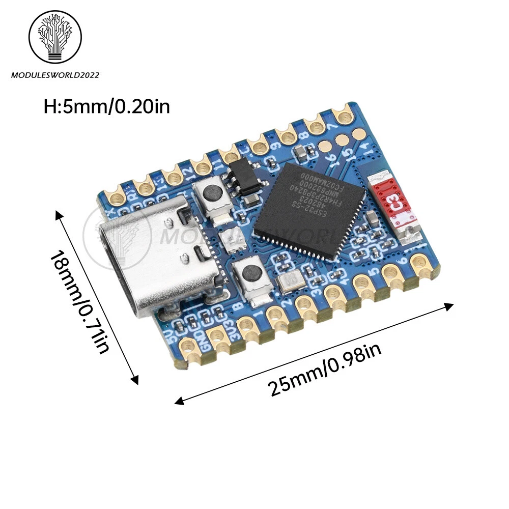 Store Categories Store Categories Other Product View Details Features 1. Equipped with high-performance Xtensa® 32-bit LX7 dual-core processor with 240MHz. 2. Supports 2.4GHz Wi-Fi (802.11 b/g/n) and Bt® 5 (LE). 3. Built-in 512KB SRAM and 384KB ROM, stacked with 4MB Flash and 2MB PSRAM. 4. Adopting stamp hole design and on-board ceramic antenna, easy to integrate into user-designed backplane. 5. Support flexible clock, module power supply separate settings and other controls, to achieve multi-scenario low-power mode. 6. Integrated USB serial port full-speed controller, leading to 34 GPIO can be flexibly configured peripheral functions. 7. With 4xSPI, 2xI2C, 3xUART, 2xI2S, 2xADC and other peripherals. 8. Based on ESP32-S3 FH4R2, pin out most of the pins under small board type, using half-hole process, can be soldered on customized board. Specification Processor: ESP32-S3 FH4R2 dual-core processor, up to 240MHz operating frequency Interface: USB Type-C interface Current: (Max) 800mA Antenna: 2.4G ceramic antenna Button: BOOT button, press and then press reset to enter download mode. RESET reset button LED:WS2812 Cool RGB LED Size: 23.5*18mm List 1 x Development Board 2 x Pin Header (Soldering or unsoldering optional) Shipping Policy Payment Method Returns Policy Shipping Policy Payment Method Returns Policy Home Payment Shipping About us Contact us Copyright©2018 datacaciques Home Payment Shipping About us Contact us Store Categories Store Categories Other Product View Details Features 1. Equipped with high-performance Xtensa® 32-bit LX7 dual-core processor with 240MHz. 2. Supports 2.4GHz Wi-Fi (802.11 b/g/n) and Bt® 5 (LE). 3. Built-in 512KB SRAM and 384KB ROM, stacked with 4MB Flash and 2MB PSRAM. 4. Adopting stamp hole design and on-board ceramic antenna, easy to integrate into user-designed backplane. 5. Support flexible clock, module power supply separate settings and other controls, to achieve multi-scenario low-power mode. 6. Integrated USB serial port full-speed controller, leading to 34 GPIO can be flexibly configured peripheral functions. 7. With 4xSPI, 2xI2C, 3xUART, 2xI2S, 2xADC and other peripherals. 8. Based on ESP32-S3 FH4R2, pin out most of the pins under small board type, using half-hole process, can be soldered on customized board. Specification Processor: ESP32-S3 FH4R2 dual-core processor, up to 240MHz operating frequency Interface: USB Type-C interface Current: (Max) 800mA Antenna: 2.4G ceramic antenna Button: BOOT button, press and then press reset to enter download mode. RESET reset button LED:WS2812 Cool RGB LED Size: 23.5*18mm List 1 x Development Board 2 x Pin Header (Soldering or unsoldering optional) Shipping Policy Payment Method Returns Policy Shipping Policy We will arrange shipping for you within 24 Hours after payment cleared except the holidays. -We ship items to Worldwide. Thank you! -we will ship out the order in 1-2 business days after payment cleared .Since it is international shipping ,delivery time is about 15--28 business days to arrive to most countries. Payment Method We accept PayPal payment ONLY, and must be received within 5 days from the date of purchase. 2. It is easy and safe for you to pay by credit cards, debit cards, bank transfers and PayPal account balances. 3.Buyers are responsible for import duties,custom fees and taxes, if any, please check your country. Returns Policy 1.We believe our items are so outstanding. We are convinced you will be happy with your Purchase. 2. If you do not satisfy with our items. Please simply return to us within 30 Days in original condition. Just pay for the returned postage. Then we can issue full refund or resend the item to you after the returned item arrived at our warehouse. 3. Please include your eBay ID and item number with any email requests.