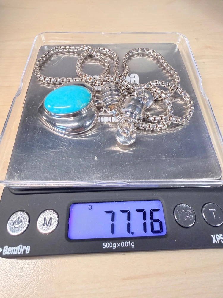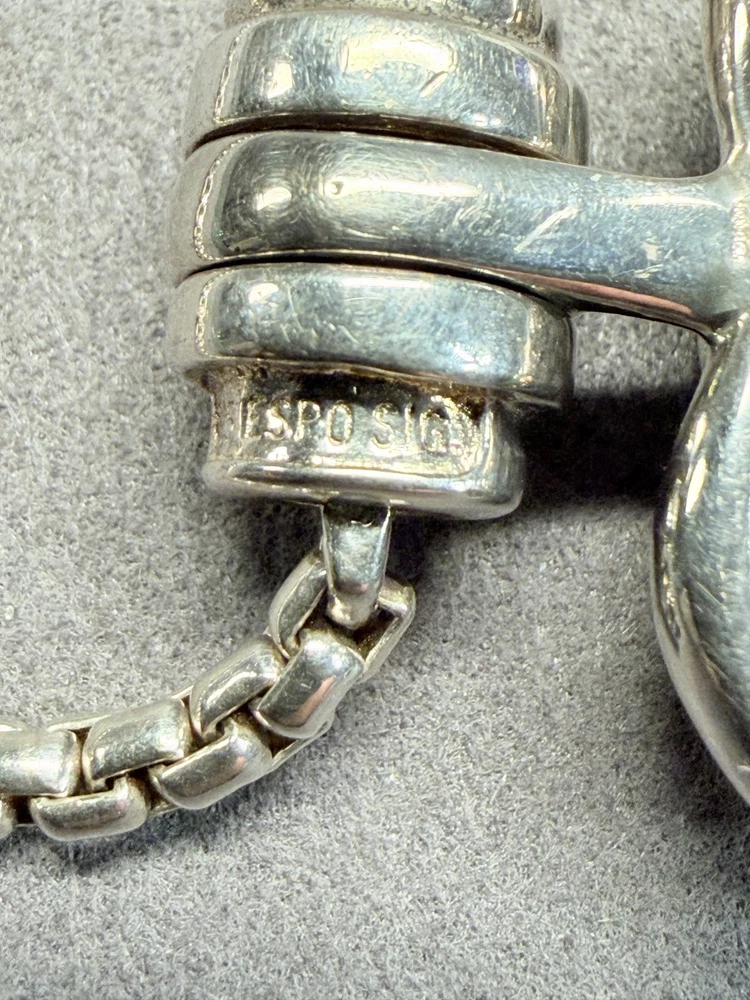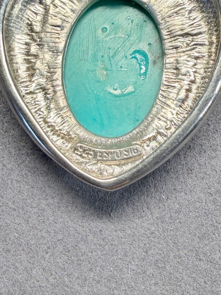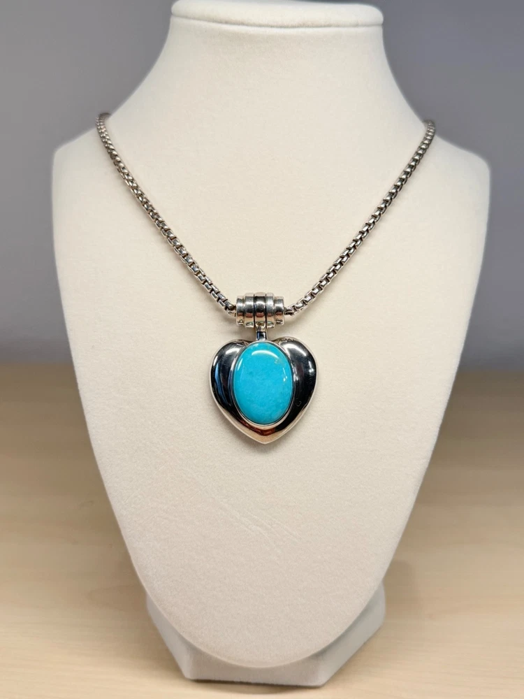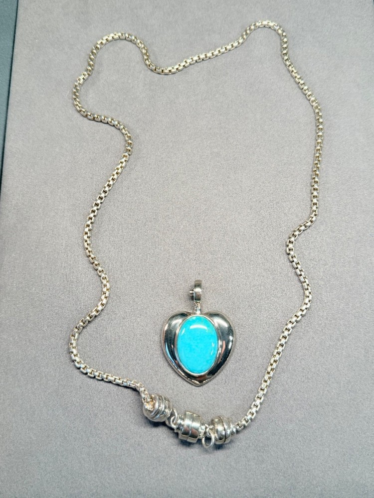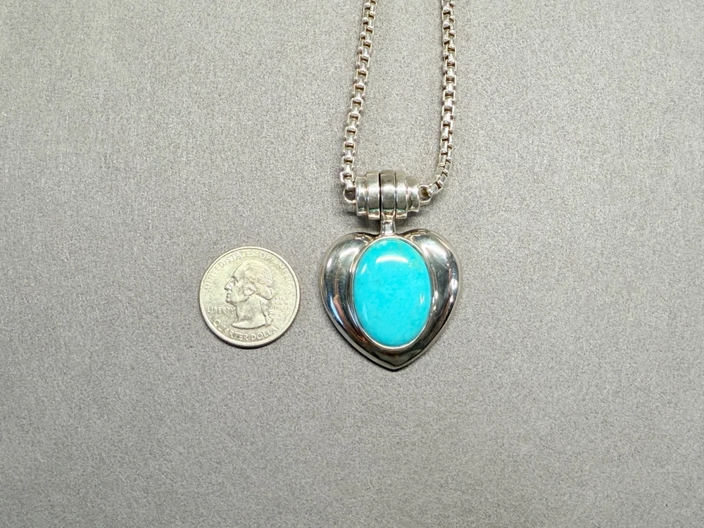 - ESPO Joseph Esposito Sterling Silver Turquoise Heart Snap Pendant Necklace 24in - **INCLUDES CHAIN SNAP TO WEAR CHAIN ALONE** EXCELLENT PREOWNED CONDITION - ITEM SHIPS OUT IMMEDIATELY - - REPUTABLE SELLER - CHECK MY FEEDBACK! - Base metal: 925 Sterling Silver Manufactured: ESPO SIG - Joseph Esposito Aprx. Weight: 77.76 grams Aprx Pendant Size: 1-3/4 inches X 1-1/4 inches Aprx Chain Length: 24 inches Aprx Chain Width: 3mm Stones: x1 Turquoise **ITEM HAS BEEN INSPECTED BY LICENSED GEMOLOGIST TO ENSURE ACCURATE DETAILS & QUALITY** Piece is in very good condition. Please reference pictures for description. (MANY PHOTOS w/ DIFFERENT LIGHT SETTINGS) Comes with case. Most items are sent via USPS ground advantage w/ insurance unless another option is chosen. All items exceeding $749 will require signature. Handling typically takes 1-3 days. (some items will have handling charges to help cover parcel insurance) **IF YOU REQUIRE QUICK TURNAROUND PLEASE SELECT AN EXPEDITED SHIPPING** CHECK OUT MY OTHER FINE JEWELRY LISTINGS!!! >>> https://www.ebay.com/str/alwayforward/Jewelry-Watches/_i.html?_sacat=281 Notes: J02-315