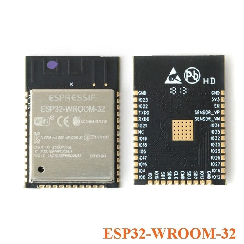 ESP-WROOM-32 ESP32 Bluetooth and WIFI Dual Core CPU with Low Power Consumption MCU IOT Module ESP-WROOM-32 is Powered by Espressif's most advanced SoC, the ESP-WROOM-32 features high performance, a wide range of peripherals, Wi-Fi and Bluetooth radio, which provide a complete solution tailored to advanced IoT applications. 240 MHz dual core Tensilica LX6 microcontroller with 600 DMIPS Integrated 520 KB SRAM Integrated 802.11BGN HT40 Wi-Fi transceiver, baseband, stack and LWIP Integrated dual mode Bluetooth (classic and BLE) 16 MByte flash 2.2V to 3.6V operating voltage -40°C to +125°C operating temperature On-board PCB antenna / IPEX connector for external antenna Supports sniffer, station, softAP and Wi-Fi direct modes Max data rate of 150 Mbps@11n HT40, 72 Mbps@11n HT20, 54 Mbps@11g, and 11 Mbps@11b Maximum transmit power of 19.5 dBm@11b, 16.5 dBm@11g, 15.5 dBm@11n Minimum receiver sensitivity of -98 dBm 135 Mbps UDP sustained throughput 2.5 µA deep sleep current Package Include: 1 pcs * ESP-WROOM-32