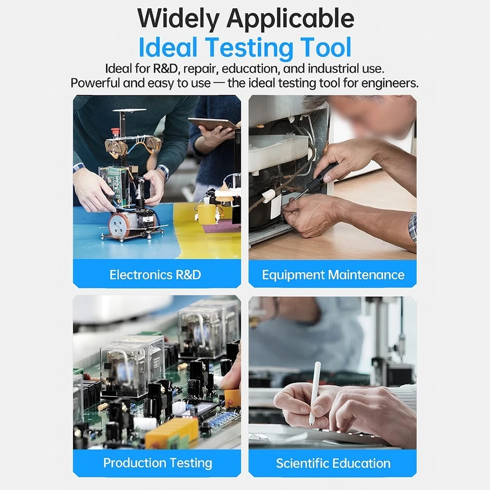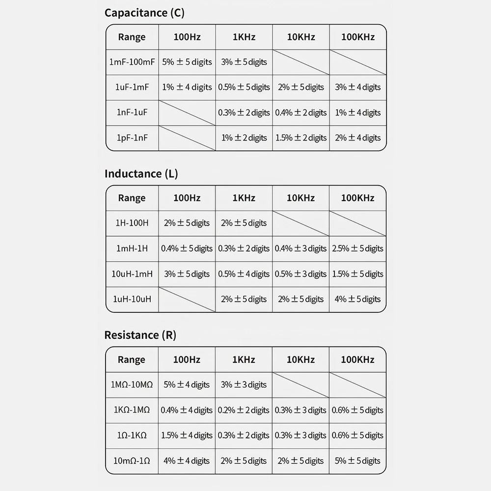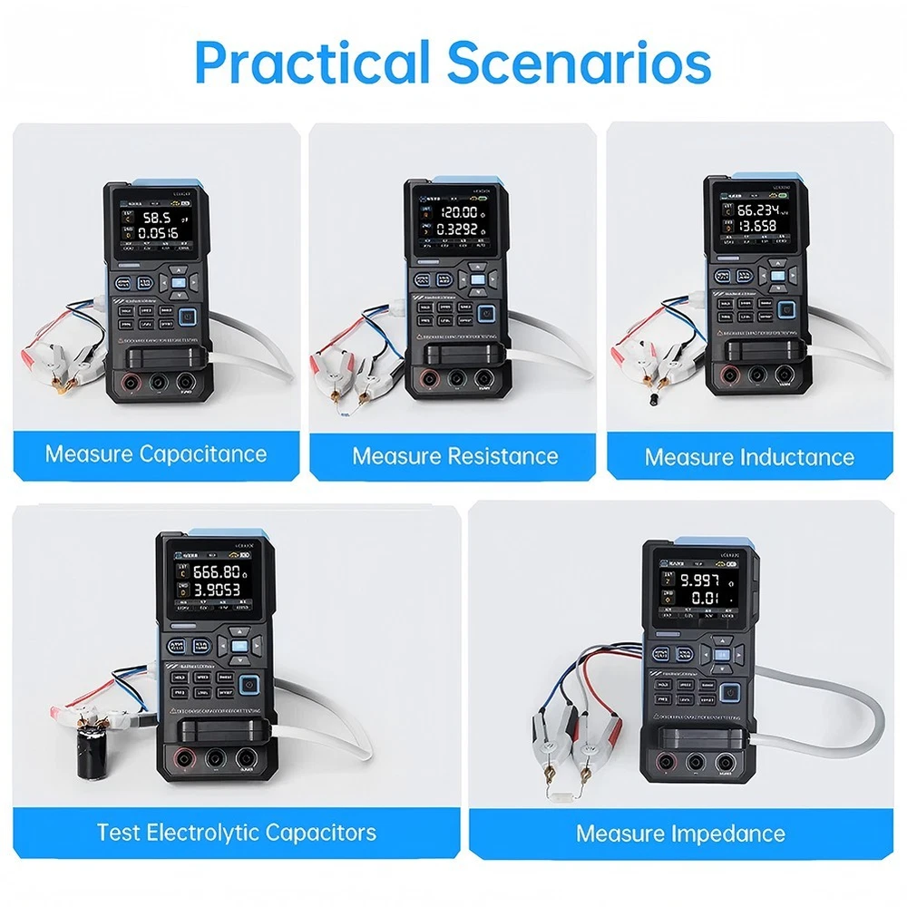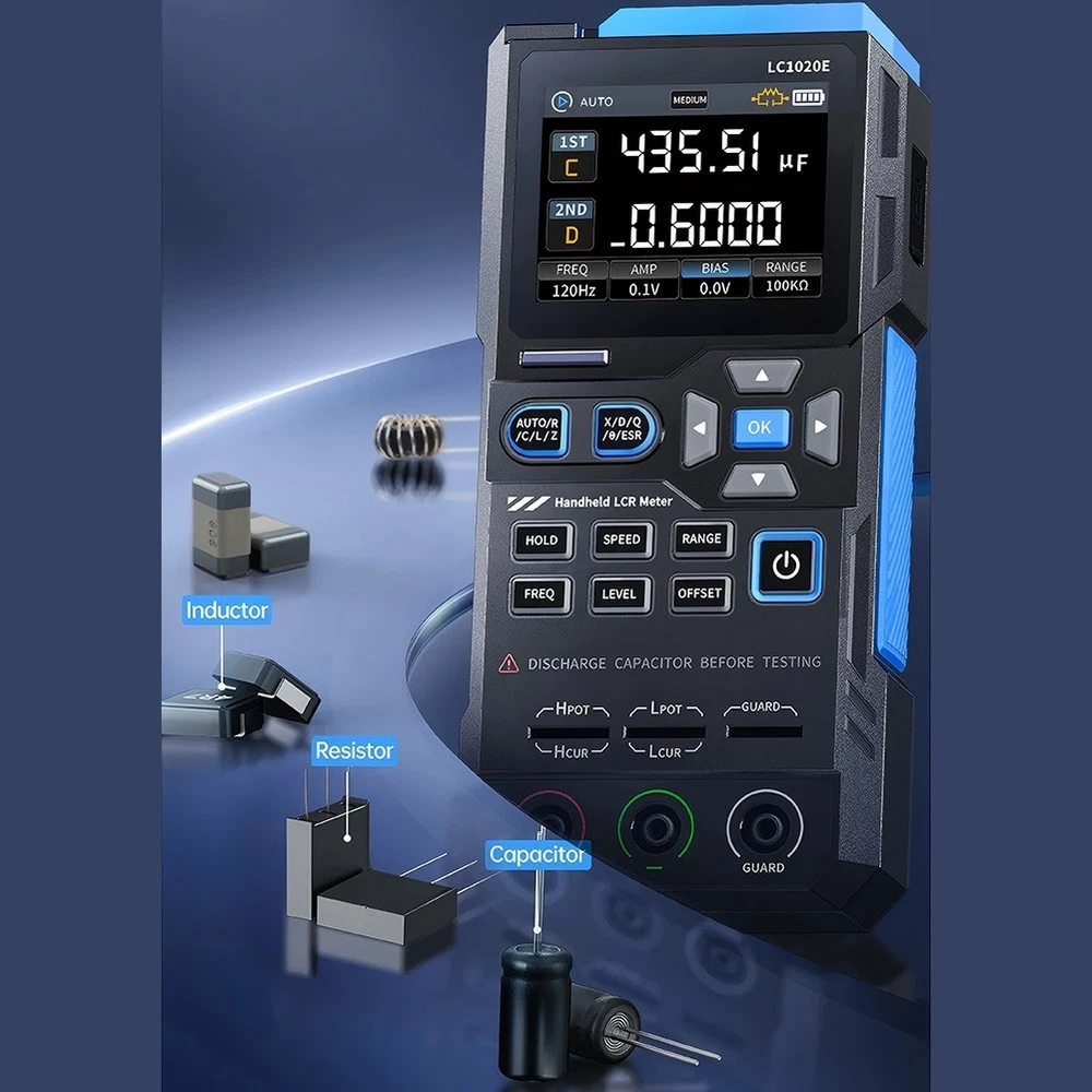 ESR Tester Digital Bridge Tester 2.8-inch TFT Display Component Testing DESCRIPTION Features: 1. High-Precision, Wide-Range Measurement: The LC1020E boasts a basic accuracy of up to 0.3%, reliable and precise professional measurements. It supports a wide measurement range of inductance (0-100H), capacitance (0-100mF), and resistance (0-10MΩ), making it suitable for a wide range of components. 2. Multiple Frequencies and Selectable Test Levels: This LCR meter five selectable test frequencies (100Hz, 120Hz, 1kHz, 10kHz, 100kHz) and three test levels (0.1V, 0.3V, 0.6V), providing the flexibility to accurately analyze component characteristics under a wide range of conditions, from general-purpose testing to high-frequency parameter analysis. 3. Dual Test Ports for Versatile Versatility and Reliability: The device a convenient three-terminal test socket for quick, everyday measurements, as well as a five-terminal test slot. The five-terminal configuration supports full four-terminal Kelvin measurements when used with professional test fixtures, minimizing impedance errors and the highest measurement accuracy. 4. Intelligent Component Sorting and Data Logging: The intelligent comparison function significantly improves batch testing efficiency. Simply set the nominal value and tolerance (0.1% - 99.9%) to automatically sort components, with pass/fail results confirmed via visual and audio prompts. Data logging mode records the number of pass and fail measurements for effective quality control. 5. Portable Design, Clear Display, and Long Battery Life: The LC1020E is designed for laboratory, production line, and field use. Its compact design a powerful 3.7V, 3000mAh rechargeable lithium battery. The large 2.8-inch TFT color screen clearly displays all primary and secondary parameters (L/C/R/Z, X/D/Q/θ/ESR), making it easy to read measurement values anytime, anywhere. Specifications: Part Name: LC1020E Digital Bridge Handheld Tester Material: ABS Model: LC1020E Color: Black size: As shown 1. Display: 2.8-inch TFT LCD 2. Basic Accuracy: 0.3% 3. Number of Display Digits: Primary Parameter: 4.5 digits; Secondary Parameter: 4.5 digits 4. Test Frequency: 100Hz, 120Hz, 1kHz, 10kHz, 100kHz 5. Test Level: 0.1V, 0.3V, 0.6V 6. Internal Bias: 0.0V, 0.5V 7. Measurement Parameters: Primary Parameters: AUTO/R/C/L/Z; Secondary Parameters: X/D/Q/θ/ESR 8. Measurement Range: L: 0-100H, C: 0-100mF, R: 0-10MΩ 9. Measurement Speed: Fast (4 times/second), Medium (2 times/second), Slow (1 time/second) 10. Calibration Function: Open-circuit calibration, short-circuit calibration 11. Comparison Function: Calculates the relative error between the measured component value and the nominal value, displays it as a percentage, and provides a filtered result. The nominal value and tolerance can be set, with an adjustable range of 0.1% to 99.9%. 12. Recording Function: Checks whether the measured component data meets the set nominal value and tolerance, and records the number of successful and failed measurements. 13. Test terminal configuration: three-terminal, five-terminal 14. Output impedance: 100Ω 15. Communication interface: Type C (virtual serial port) 16. Other functions: Language setting, screen brightness, sound settings, auto power off, calibration settings, system information. Package Contents: 1. LC1020E LCR meter *1 2. Data cable *1 3. Short circuit board *1 4. Kelvin test clip *1 5. Test (black *1 + red *1) 6. User manual *1 Note: 1. The real color of the item may be slightly different from the pictures shown on website caused by many factors such as brightness of your monitor and light brightness. 2. Please allow slight manual measurement deviation for the data. POLICES Shipping Payment WARRANTY We only ship to confirmed ebay Order addresses. Please comfirm that your Order address is in line with your shipping address. Please kindly note that the combined shipping is not provided because the shipping fee is calculated by weight. Also, the each additional item means exactly the the same color and size. It takes about 7-15 working days to Australia; about 10-30 working days to other countries. Transit time may be a little delayed because of the bad weather and customs inspection. If you do not receive your item within 30 working days since payment finished, please contact us immediately for further assistance. Payment must be completed within 5 days. If you have any problems about payment, please contact us via ebay message. We strive for 100% customer satisfaction! Positive Feedback is very important to us. If you have any questions, please feel free to contact us via "Ask seller a question" . We will reply your email within 24 working hours.