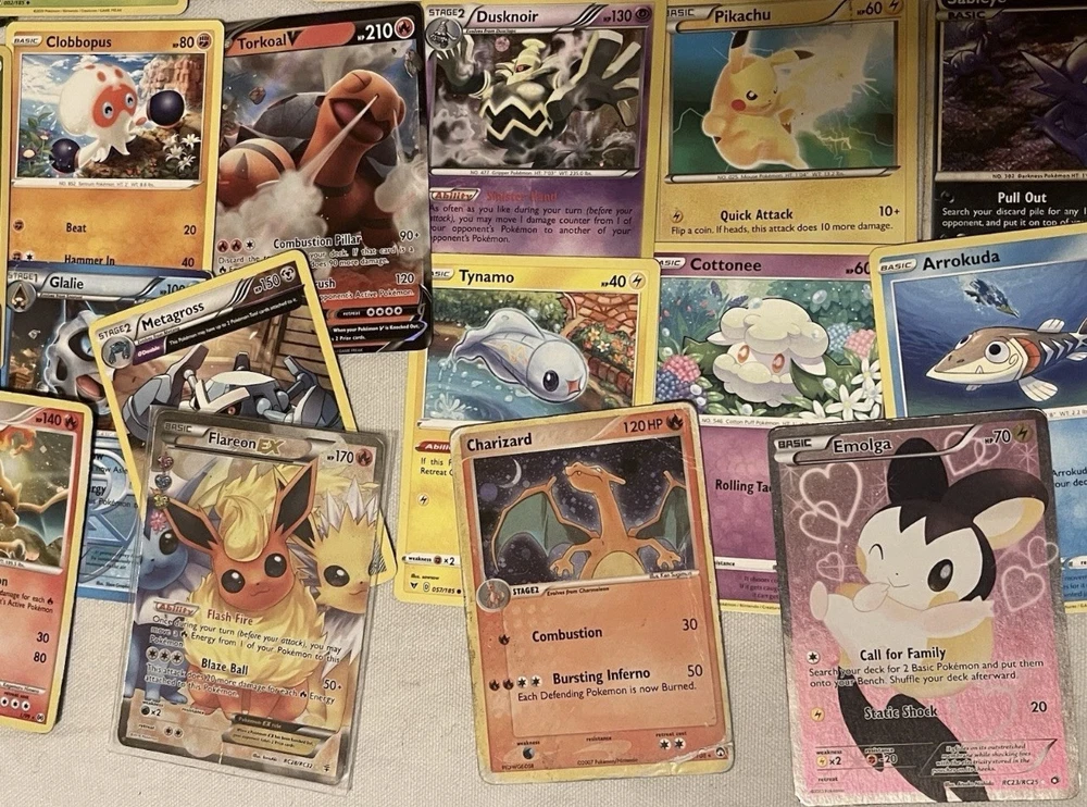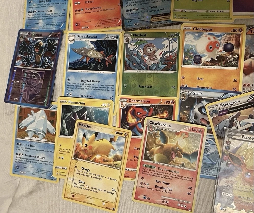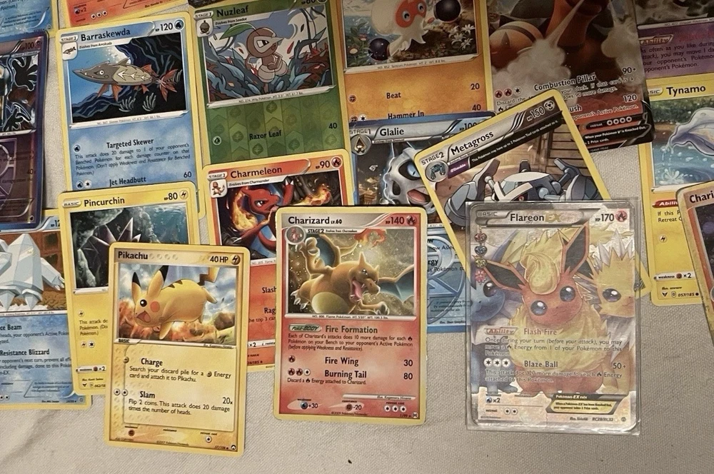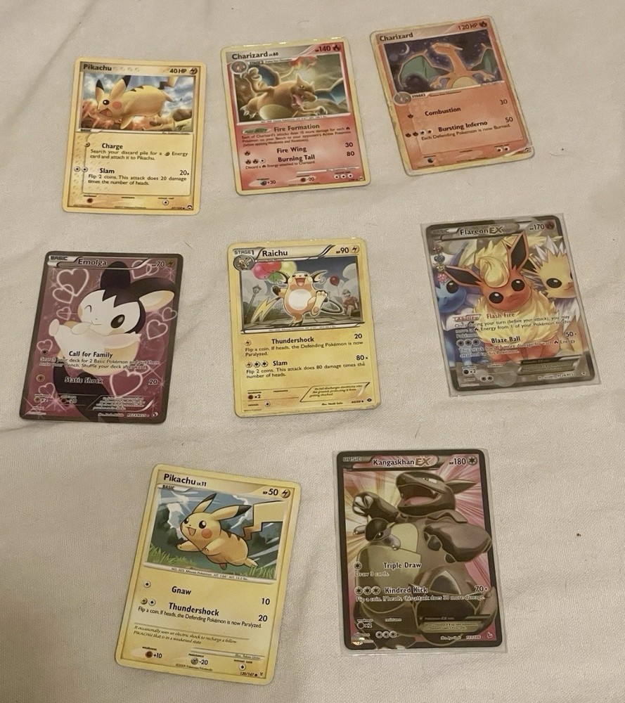 ***THIS HAS BEEN RELISTED. PREVIOUS AUCTION ENDED DUE TO NON PAYMENT FROM BUYER*** ESTATE FIND Lot of Misc. Well Played Pokemon Cards Charizard Raichu Flareon Holo: This is an estate sale find and may contain slight smoke or storage smell. Cards are used condition, some may contain damage and are not mint condition. Lot includes some rare, vintage, loose, holos or bulk cards etc. as it is just a mix of various well loved cards. What you see is what you get! Please refer to all photos as they are included in the description. Feel free to message me if you have any questions or require additional photos. Good Luck!! :) Fast Shipping!! Typically sent out same day. ***Please make sure that if you are placing bids and do win the auction that you have funds available for payment.***