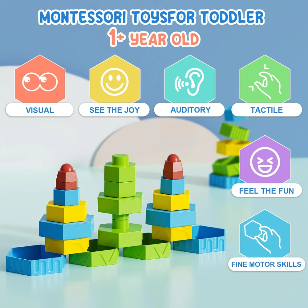 ESYCOOM Montessori Toys for 1 2 3 4 5 Year Old Boys Girls Toddlers Preschool Learning Activities 12Pcs Building Blocks Stacking Educational Toys STEM Sensory Toys Gifts for Kids Age 1-2 💜Open -ended toys for ages 2-4: Includes Balancing block with 6 stacking blocks and 5 stacking rings, it can be easy to combine into any shape. If you have more than 2 sets of stacking cubes you will be able to combine more shapes. Blocks for toddlers 3-5, toddler toys age 1-2, educational toys for toddlers 1-3, toddler travel toys, learning toys for 1 + year old. baby girl essentials. 💜 Stem toddler toys age 2-4: Toddler blocks Enhance your child’s Science, Technology, Engineering, and Math skills with the STEM building block toys. At the same time, it can develop children's fine motor development, artistic cognitive, practical ability, imagination and creativity. Stacking blocks can also make sounds, which can attract baby's attention and exercise baby's hearing, toddler educational toys for one year old gifts. baby girl christmas gift. 💜 Montessori Toys for 1 Year Old Boys: Stacking Tower Toy For Babies Infants toys are used as drawing shapes, you can easily put the toy into the box to avoid loss, and it can be reused. Building blocks BPA, lead, heavy metal, and phthalate free and compliance with safety regulations. Ideal for ages 1+, these blocks help to develop imagination and fine motor skills. 💜Stacker toys for toddlers 1-3: Balancing Stacking outside for 1 year old Toys building blocks are created from a high quality material that is not only safe but also sturdy and easy to pick and build. Your child can explore their wild imagination with this high quality innovative building set. 💜 Enjoy Education and Learning Toys: Perfect for collaborative group activity or school classrooms, kindergarten, indoors, outdoors and home. Can be connected without limit to stimulate children's creativity. Also, it can be used for decoration, good-looking and fun. 💜Cause and Effect Toys: Montessori Toys for 1 to 3-Year-Old Boys Girls Toddlers, Sorting & Stacking Toys for Kids Preschool, Educational Toys, Color Recognition Stacker Shape Sorter, building toys for toddlers 1-3. 💜Open -ended toys for ages 2-4: Includes Balancing block with 6 stacking blocks and 5 stacking rings, it can be easy to combine into any shape. If you have more than 2 sets of stacking cubes you will be able to combine more shapes. Blocks for toddlers 3-5, toddler toys age 1-2, educational toys for toddlers 1-3, toddler travel toys, learning toys for 1 + year old. baby girl essentials. 💜 Stem toddler toys age 2-4: Toddler blocks Enhance your child’s Science, Technology, Engineering, and Math skills with the STEM building block toys. At the same time, it can develop children's fine motor development, artistic cognitive, practical ability, imagination and creativity. Stacking blocks can also make sounds, which can attract baby's attention and exercise baby's hearing, toddler educational toys for one year old gifts. baby girl christmas gift. 💜 Montessori Toys for 1 Year Old Boys: Stacking Tower Toy For Babies Infants toys are used as drawing shapes, you can easily put the toy into the box to avoid loss, and it can be reused. Building blocks BPA, lead, heavy metal, and phthalate free and compliance with safety regulations. Ideal for ages 1+, these blocks help to develop imagination and fine motor skills. 💜Stacker toys for toddlers 1-3: Balancing Stacking outside for 1 year old Toys building blocks are created from a high quality material that is not only safe but also sturdy and easy to pick and build. Your child can explore their wild imagination with this high quality innovative building set. 💜 Enjoy Education and Learning Toys: Perfect for collaborative group activity or school classrooms, kindergarten, indoors, outdoors and home. Can be connected without limit to stimulate children's creativity. Also, it can be used for decoration, good-looking and fun. 💜Cause and Effect Toys: Montessori Toys for 1 to 3-Year-Old Boys Girls Toddlers, Sorting & Stacking Toys for Kids Preschool, Educational Toys, Color Recognition Stacker Shape Sorter, building toys for toddlers 1-3. Shipping from the USA All of our products are shipped from the USA, ensuring quick delivery to your destination. Payment We offer the following payment methods: PayPal, credit card, bank transfer, and eBay's secure payment system. Free Shipping & Free Returns Shipping within the USA is FREE. Additionally, any return is absolutely free for you. Risk-Free Purchase You have the option to return an item within 30 days without any justification. We cover the return shipping costs! Fast Shipping We ship immediately upon receipt of payment. Generally, the package is delivered within 2-3 days in the USA. If it takes longer, we will contact you. Quality and Costs Made in Europe, USA, China No customs fees or additional charges Total satisfaction guarantee Invoice with declared VAT available upon request in .pdf format Feedback Your feedback is very important to us. After you pay for your purchase, you will automatically receive positive feedback from us.