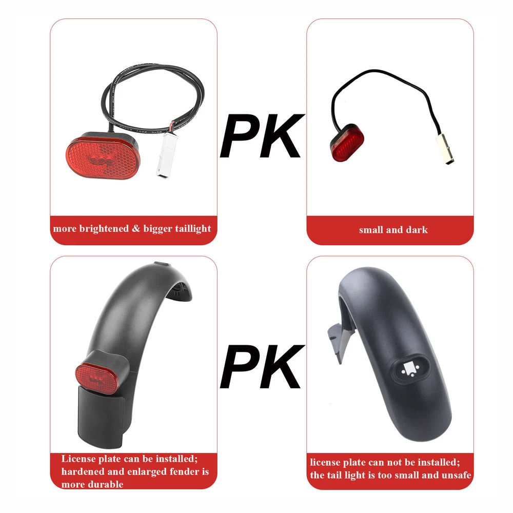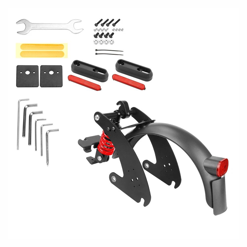 Features: 1. GOOD SHOCK ABSORPTION:The shock absorption effect of the upgraded electric scooter is more significant than the original shock suspension. The shock absorber is durable and not easy to be damaged. At the same time, the comfort level of shock suspension is also improved, making you more stable and comfortable when riding. 2. HIGH-QUALITY MATERIAL: scooter shock suspension are made of high-quality steel material, which is durable and has excellent shock absorption performance. 3. LICENSE PLATE DESIGN: We have matched the shock absorber set with high-quality rear wheel fenders, and the fenders have also specially designed the license plate position, which is convenient for you to add license plates to your electric scooter later. 4. ENLARGED TAILLIGHTS:The fenders in the shock absorber kit are also designed with taillights. The taillights are larger and brighter than the original ones, making you safer when riding. 5. NON-DESTRUCTIVE INSTALLATION: In order to make it easier for scooter enthusiasts to install the shock absorber, we have simplified the installation steps of the shock absorber, which can be easily used by non-professional installers. Specification: * Item: Electric scooter rear suspension kit * Shock Absorber Material: Steel * Fender Material: ABS+PC * Applicable Models:For Segway Ninebot Max G30/G30LP/G30D/G30E Electric Scooter ADVANTAGE: 1. High quality steel material 2. Good shock absorption 3. Easy to install 4. Enlarged fenders 5. Enlarged taillights Package Include: 1 * Rear suspension 2 * Reflector Kit 1 * Screw Kit 1 * Wrenches 6 * Hex Wrenchs 2 * Reflector Sticker Note: other accessories are NOT include.