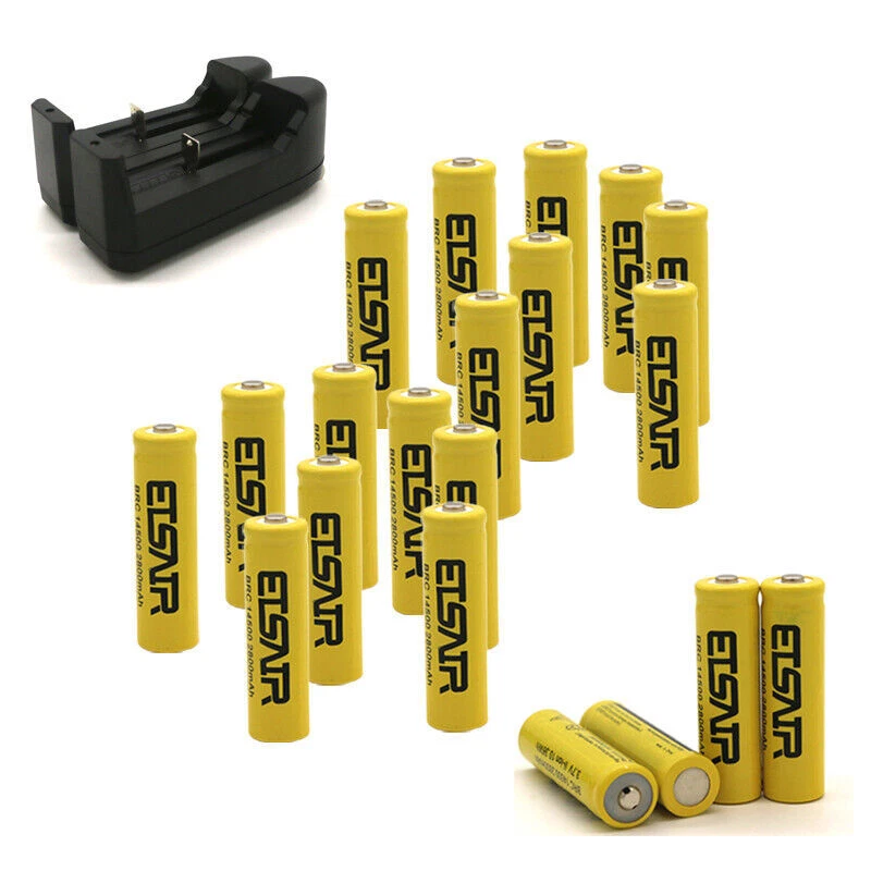 Specifications: Brand:ETSAIR Battery Model: 14500 Battery Type: Li-ion Voltage: 3.7V Capacity: 2800mAh Dimension: Diameter: 14±0.3mm; Height: 50±0.3mm Color: Yellow Suitable for flashlight torch and headlamp, etc Smart Charger Description: Type: Electric Color: black Imput : AC 110-220V 47-63HZ Output current: DC3.7V 500mah Charging time: 2 to 4 hours Can charge /186'50/16340/14500/10440 ect. 828M Four-slot lithium battery charger Description: * LED indicator shows current charging status. * Connect power indicator light: Red light * Charging indicator light: Red light * Full charge indicator light: Green light * Plug type: US plug * Suitable for:186'50/16340/14500/ 26650 Lithium rechargeable battery * Automatically stops when charging is complete. * Can charge four batteries at the same time. * Color: Black Package Included:( As picture show you choose ) 1: 2x 14500 battery(Not Include Charger) 2: 4x 14500 battery(Not Include Charger) 3: 10 x 14500 battery(Not Include Charger) 4: 2 0x 14500 battery(Not Include Charger) 5: 10x 14500 battery + 1x Charger 6: 20x 14500 battery + 2x Charger 7: 4x 14500 battery + 1x 4 Slot Charger 8: 8x 14500 battery + 1x 4 Slot Charger 9: 12x 14500 battery + 1x 4 Slot Charger 10: 1x 4 Slot Charger (Not Include Battery) WARNING: DO NOT dispose in fire or heat; DO NOT puncture,damage,and disassemble; DO NOT mix fresh batteries with used batteries Shipping Once we have received cleared full payment, your items will be dispatched in 1-3 days. It normally takes : 3-8 business days for US. if your shipment delays, we hope you can be patient, and at the same time contact us, we will try our best to help you. Returns If any item is defective upon receipt or do not work, please contact us for the return address, return is accepted within 30 days after the buyer receiving the item. Returned item has to be in its original condition. Buyer is responsible for return shipping costs . After receiving the return we will make a replacement depends on our available stock, if not available, a refund will be issued.