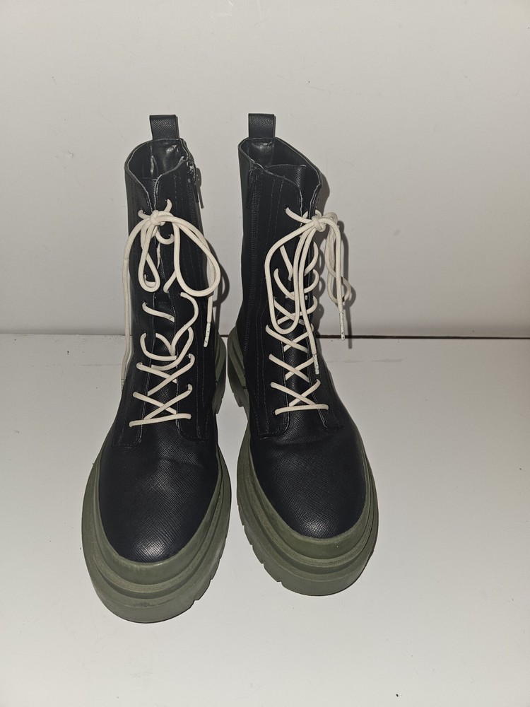 EUC Cool Planet by Steve Madden Black and Moss Combat Boots Lace Up Size 7.5. Condition is Pre-owned. Shipped with USPS Ground Advantage.