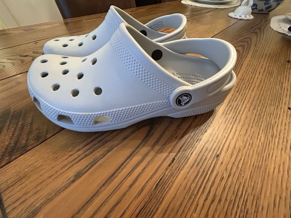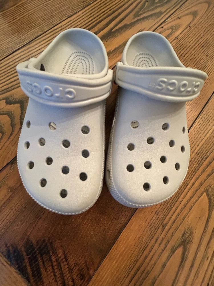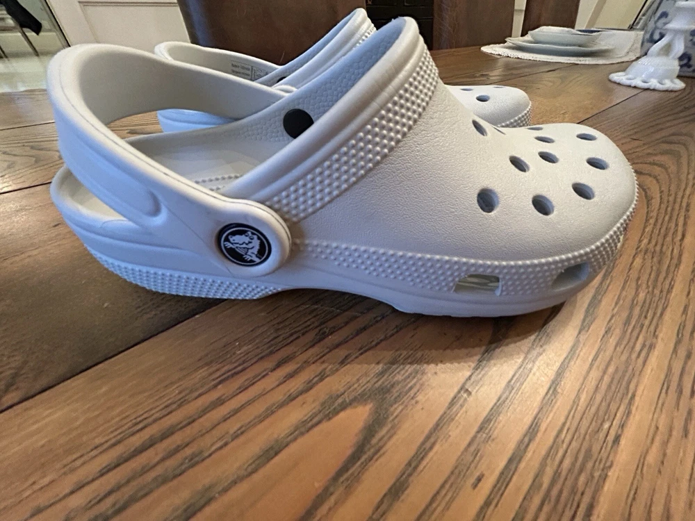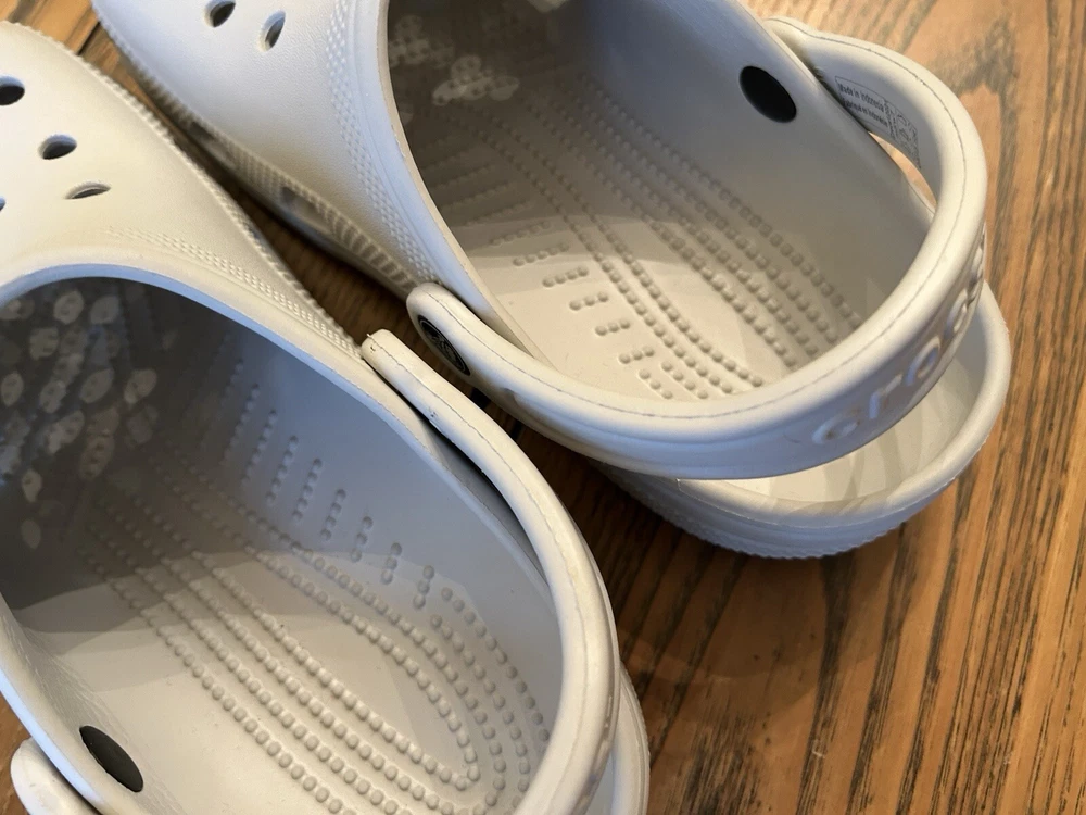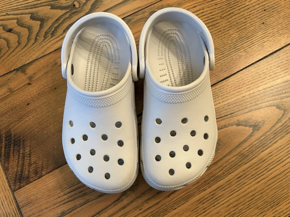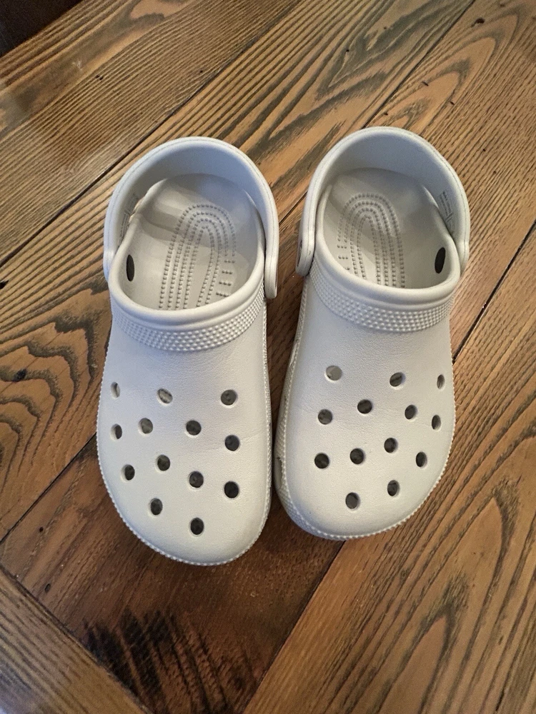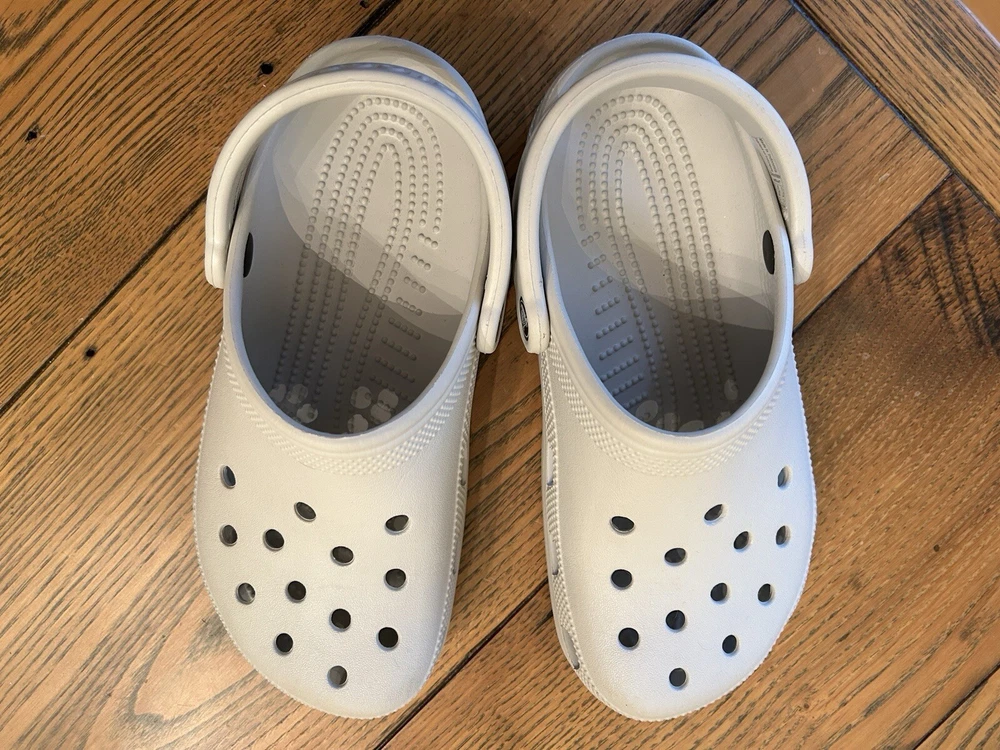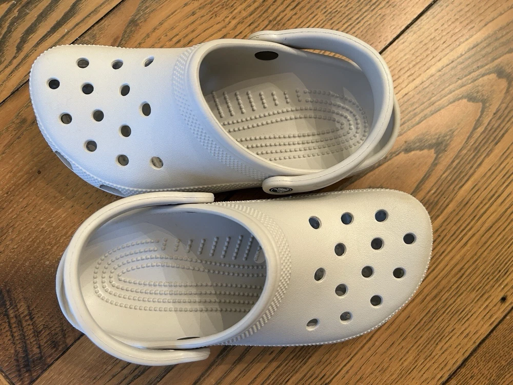Crocs Women's Size 8 202304 Grey Leopard Print Canvas Slip On Casual Flat Shoes