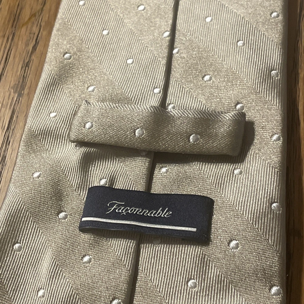 The Faconnable Woven Silk Striped Dot Tie is a high-quality men's necktie made in Italy. This designer accessory features a classic multicolor striped pattern with dot accents, perfect for a preppy and sophisticated look. Made from 100% silk fabric, this tie exudes luxury and style, making it a versatile addition to any man's wardrobe.