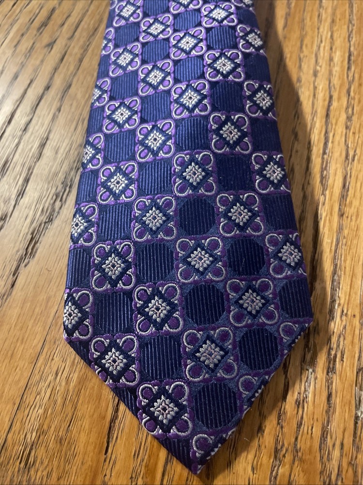 The EUC Jos. A. Bank Reserve Thick Woven Silk Foulard Tie is a designer accessory for men, featuring a classic width and a preppy style. Made from 100% silk with a woven fabric type, this multicolor tie is perfect for adding a touch of sophistication to a formal outfit. The intricate Foulard pattern adds a unique and stylish element, making it a versatile piece for any occasion. With its quality construction and timeless design, this tie is a must-have for any man's wardrobe.
