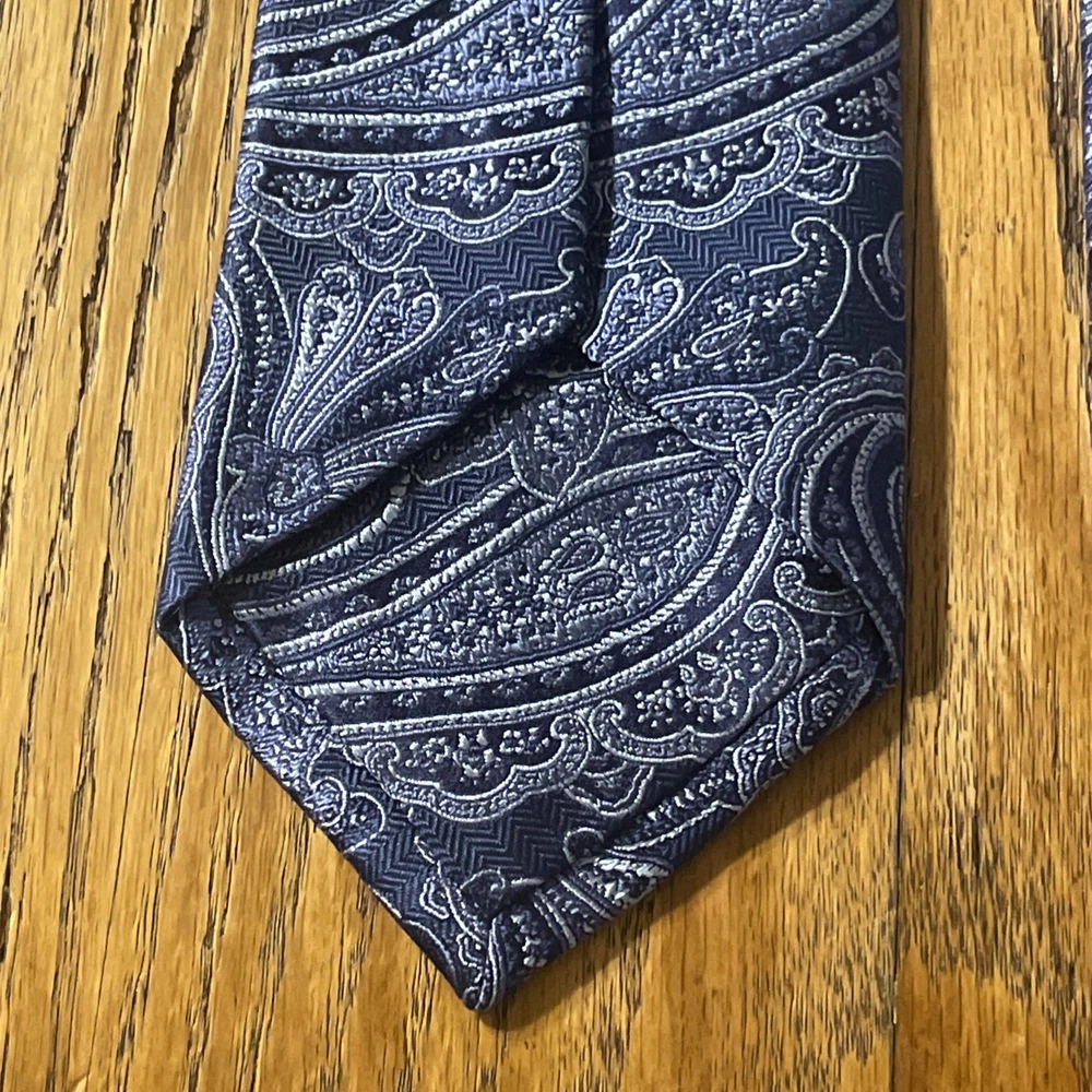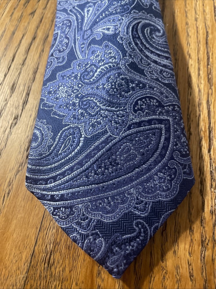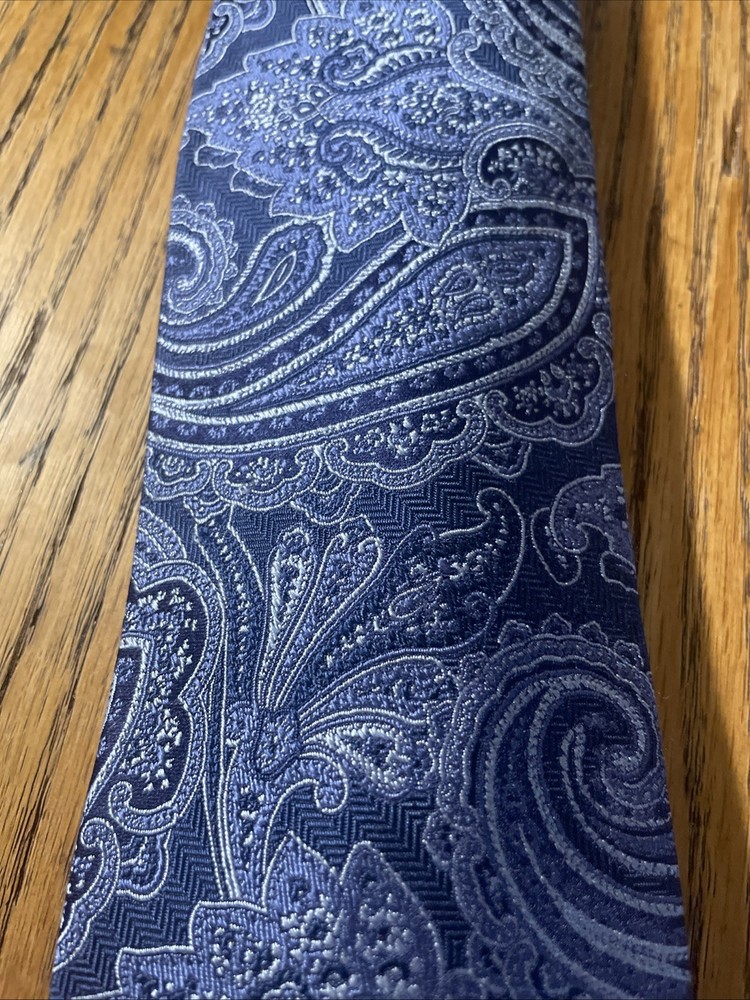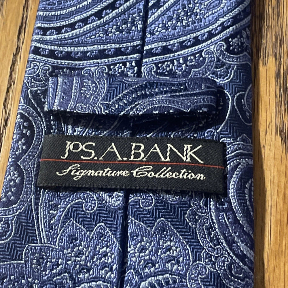 The EUC Jos. A. Bank Signature Collection Thick Silk Paisley Tie is a designer necktie for men, handcrafted from 100% silk fabric. Featuring a classic width and multicolor paisley pattern, this preppy themed accessory is woven with a high-quality finish. Perfect for adding a touch of sophistication to any formal or professional outfit, this tie is a stylish and timeless addition to any man's wardrobe.