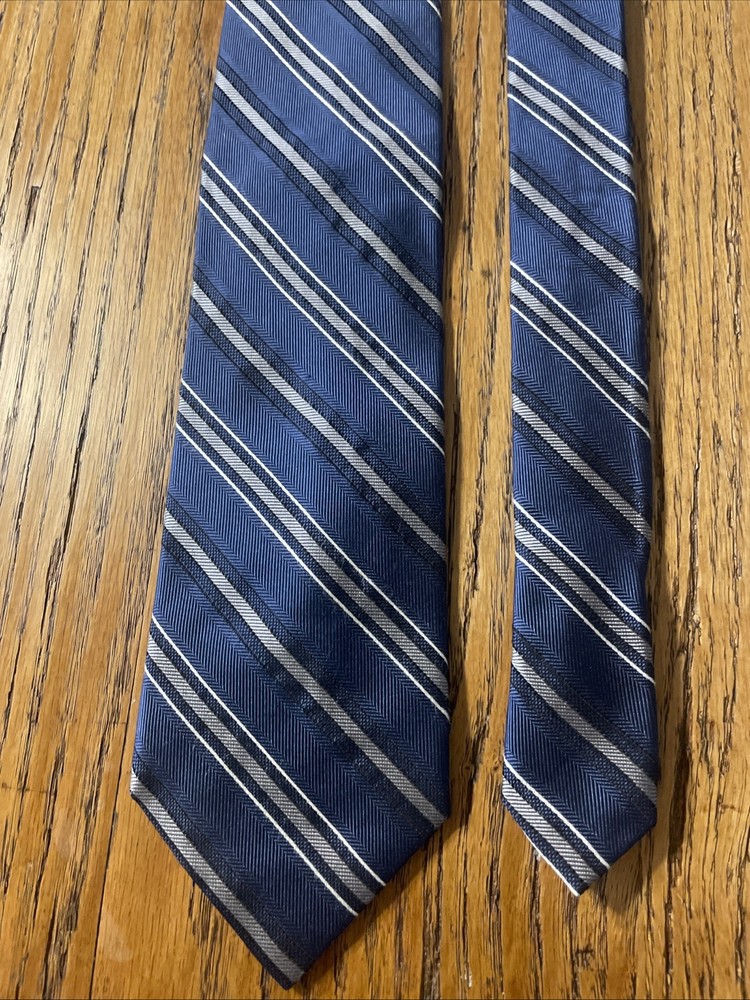 The EUC Jos. A. Bank Signature Thick Woven Striped Silk Tie is a high-quality men's accessory designed for the preppy and sophisticated individual. Handmade from 100% silk in a classic width, this designer tie features a multicolor striped pattern that adds a touch of elegance to any outfit. The Jos. A. Bank brand is synonymous with quality and style, making this necktie a versatile and timeless addition to any man's wardrobe.