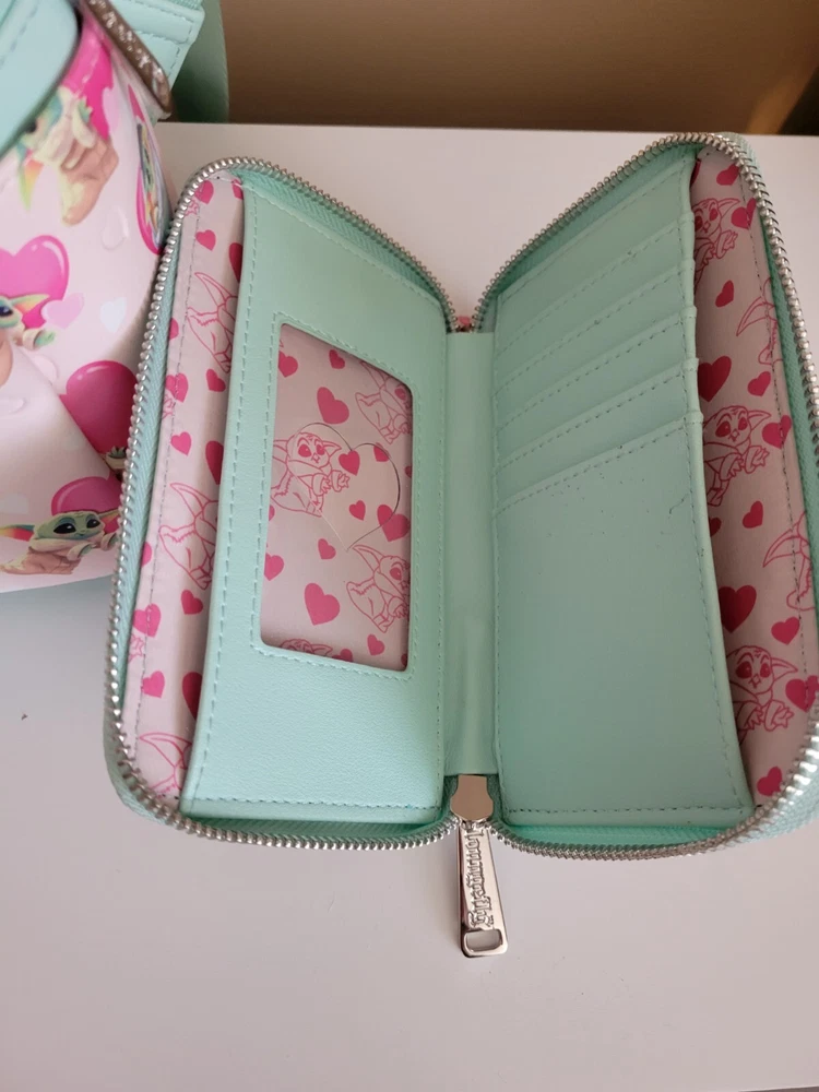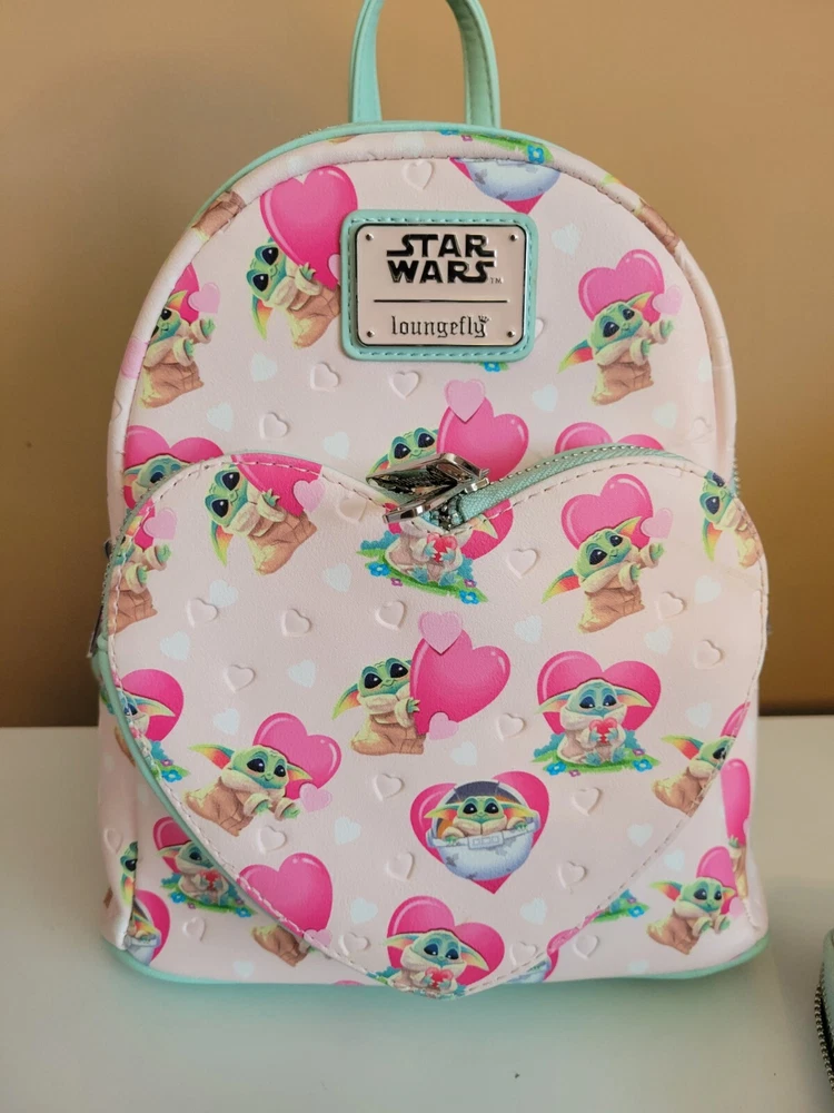 This Loungefly backpack and wallet set is a must-have for any stylish woman. The set features a spacious backpack with multiple compartments and a matching wallet that fits comfortably in your purse. The backpack is made of high-quality materials that ensure durability and longevity, while the wallet is designed to keep your cards and cash organized in a chic and sleek manner. The Loungefly set is perfect for women who want to stay organized and fashionable on the go. The backpack is ideal for carrying your everyday essentials, while the wallet fits easily into your purse for added convenience. Whether you're running errands or heading out for a night on the town, this set is the perfect accessory to complete your outfit.