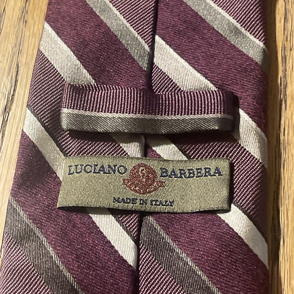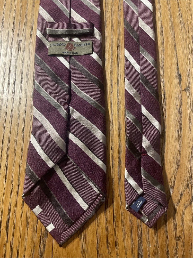 The EUC Luciano Barbera Shiny Thick Silk & Wool Striped Tie Necktie is a designer accessory for men, perfect for adding a touch of preppy style to any outfit. Made in Italy from a luxurious blend of 55% silk and 45% wool, this classic tie features a multicolor striped pattern that is both stylish and sophisticated. The high-quality woven fabric and timeless design make it a versatile option for formal events or professional settings, showcasing the craftsmanship and attention to detail that Luciano Barbera is known for.