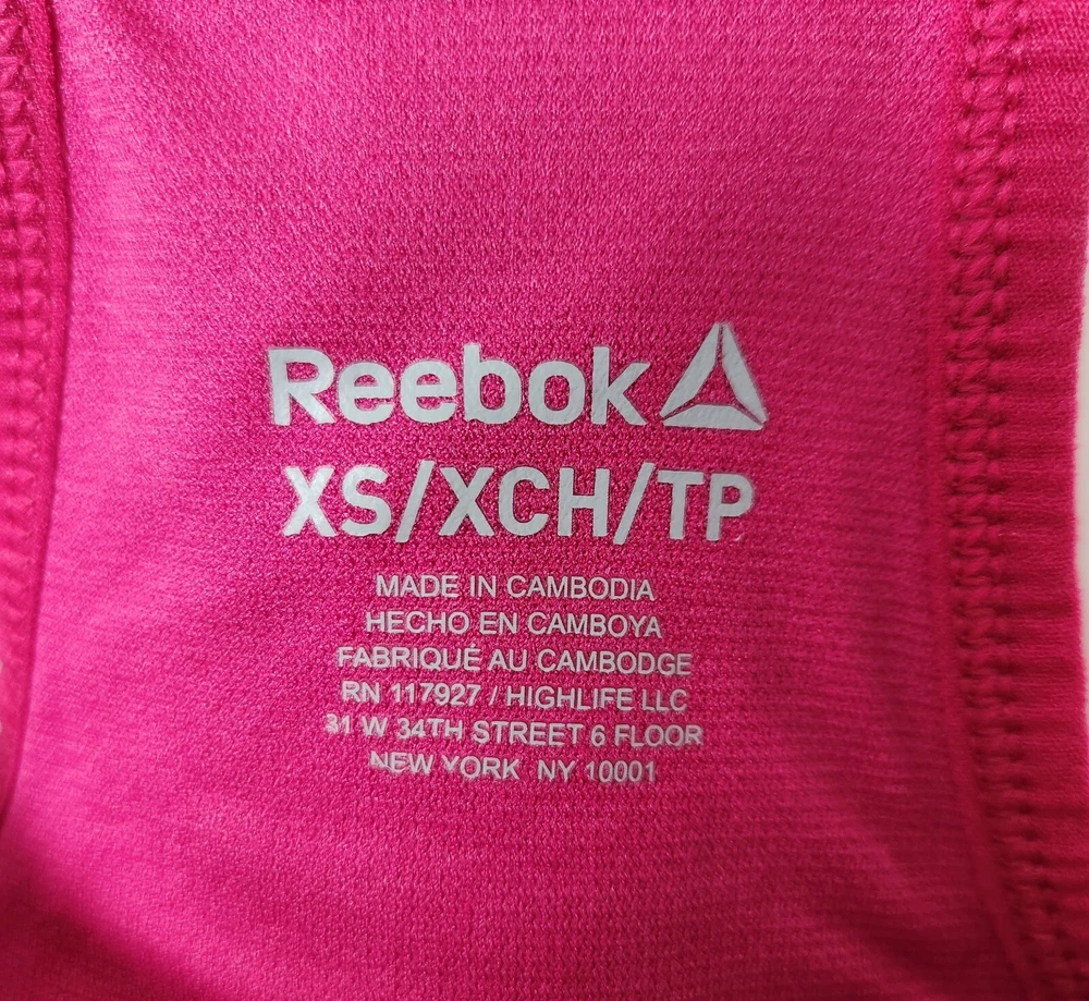 EUC! REEBOK pink padded lined racerback sports bra (XS) workout athletic yoga running EXCELLENT condition! Adjustable straps Removable padded bra (see last picture) . Made in Cambodia polyester/spandex blend This item comes to you from a smoke free, pet free home.