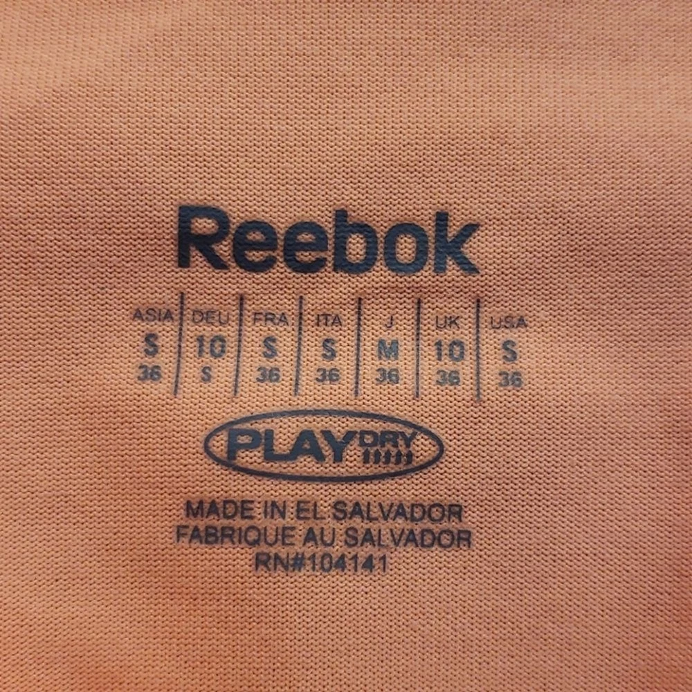 This Reebok short is in great condition with no stains or holes. It is a woman's size S and measures approximately 17.5" from armpit to armpit and 25" from shoulder to hem.