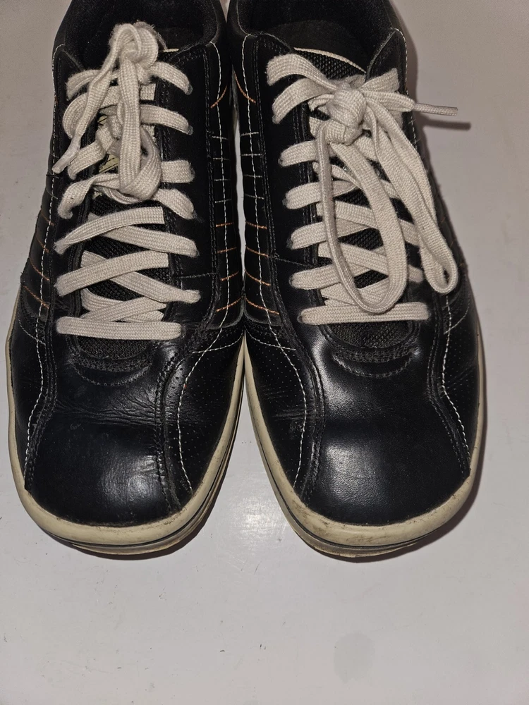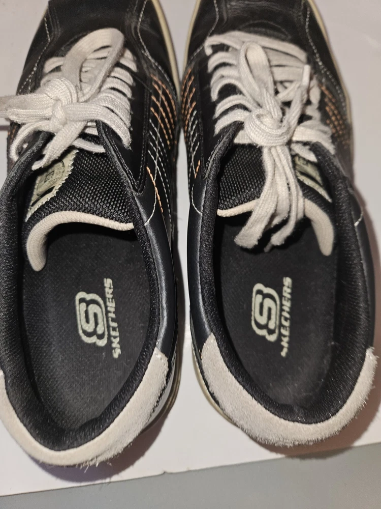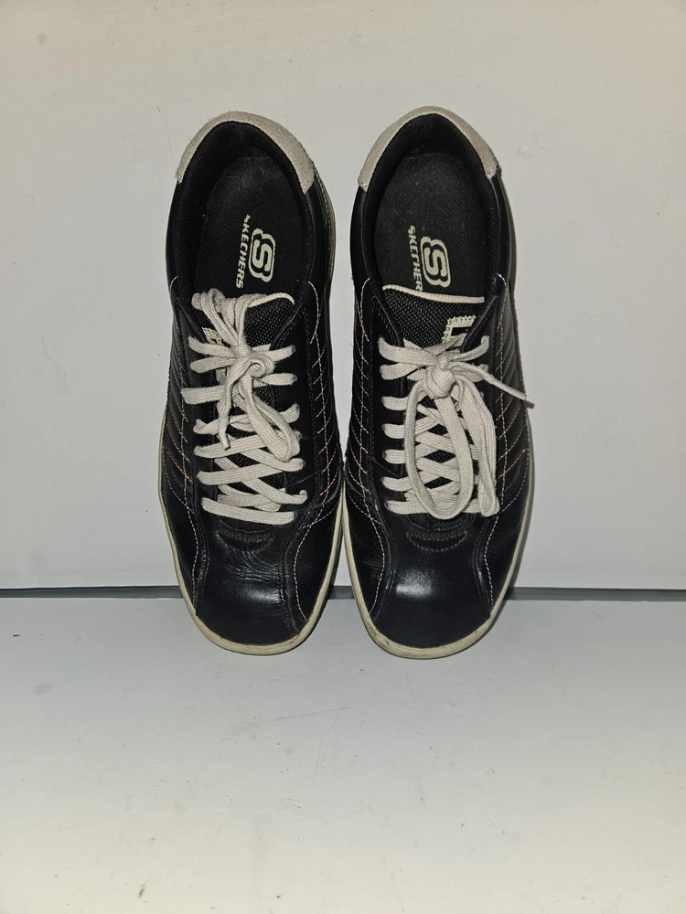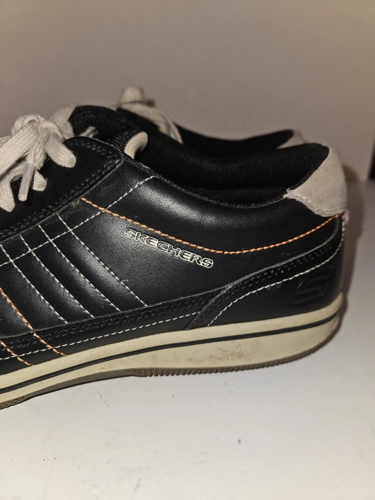 EUC Skechers Piers Men Black Leather Low Lace-Up Trainers Size 11