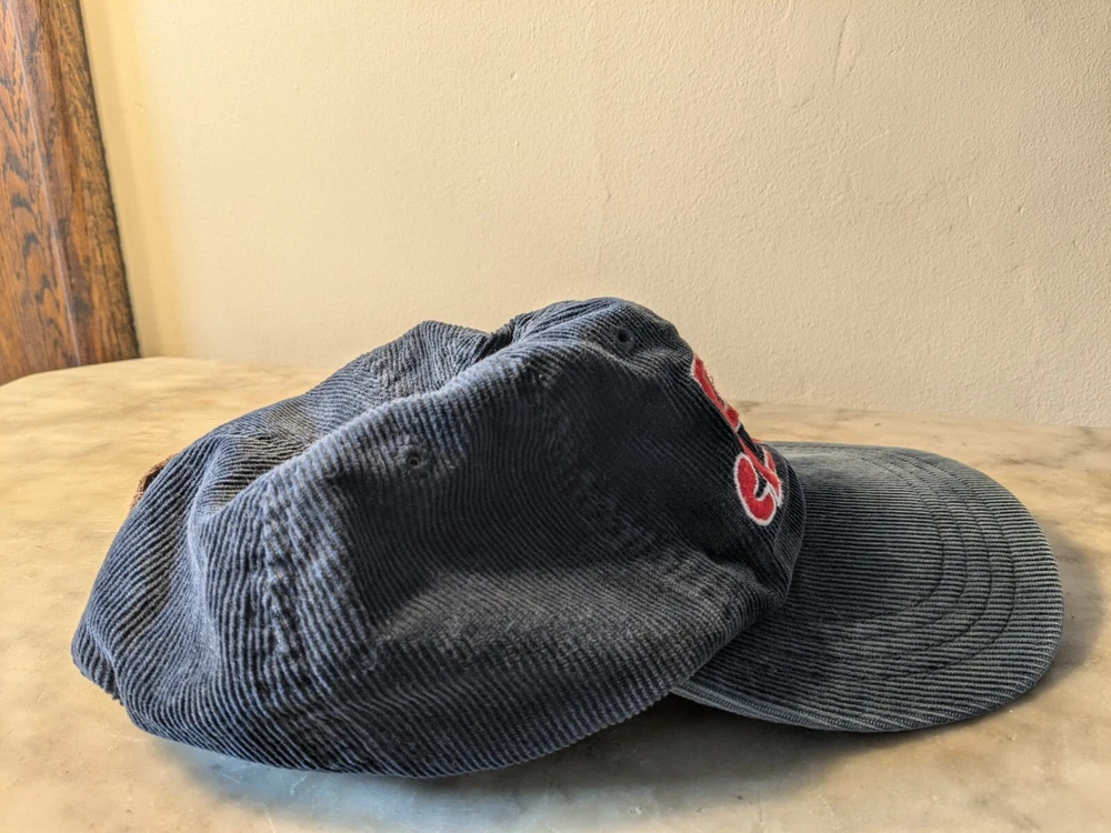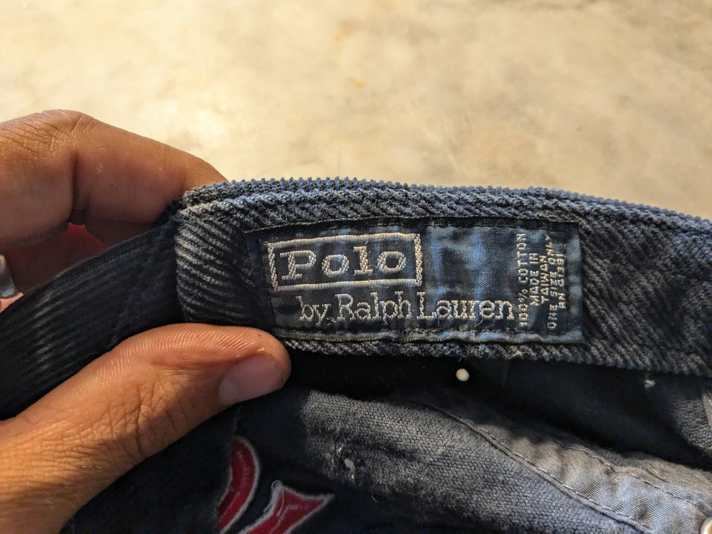 This hat is in excellent condition. There's a little bit of wear but honestly this hat has plenty of life left in it. Please ask if you have any questions. This vintage Polo Ralph Lauren corduroy baseball cap is a must-have for any 90s sports enthusiast. The hat features an embroidered Polo Ralph Lauren logo in navy and red, making it a stylish accessory for any casual occasion, party, or travel. The hat is made of a combination of leather and cotton materials, making it both lightweight and comfortable to wear. It is adjustable in size to ensure a perfect fit for any head size. This hat is a true vintage find, perfect for anyone who loves classic styles.