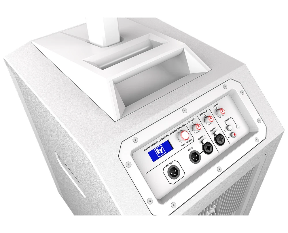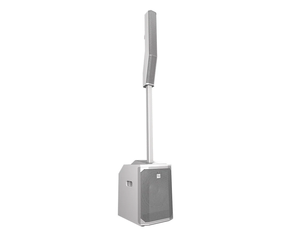 ProAudioStar DJ GEAR INSTRUMENT GEAR LIVE SOUND RECORDING MICROPHONES HEADPHONES ACCESSORIES SOFTWARE LIGHTING BUNDLES Authorized Dealer EV Electro-Voice EVOLVE 50 Powered Column Speaker Array 12" Sub Subwoofer White Active Column Array Speaker with Subwoofer - Open Box - Description Production Description for Electro-Voice EVOLVE50 Column Speaker Array With Subwoofer The EVOLVE 50 Portable Column System is a three component loudspeaker system powered by a 1000 W Class-D amplifier and driven by Electro-Voice's QuickSmartDSP. The system consists of a 15 mm wooden, ported, powered subwoofer enclosure that houses a 12” subwoofer capable of a functional frequency output down to 37 Hz. The bi-directional aluminum pole’s connection to the subwoofer is secured using a magnet, and the column array is gravity-held to the sub pole. The signal is internally routed to the components. Eight 3.5" neodymium drivers in the column array coupled with the 12" subwoofer deliver up to 127 dB SPL. The eight composite waveguides control high frequencies with 120° of horizontal coverage, and 40° of asymmetrical (down-facing) vertical coverage to ensure suitable output for sitting and standing audiences. The sub pole and column array come prepackaged in a carrying bag. The processing engine allows for easy setup via four presets (Music, Live, Speech, and Club), three-band EQ, five user-programmable presets (Store and Recall settings), output delay, phantom power (+15V), visual monitoring of limiter status, input level control and meters, and master volume control to ensure optimal gain structure. The new Electro-Voice QuickSmart Mobile application utilizes Bluetooth Low Energy (BTLE) technology for the wireless configuration, control, and monitoring of up to six EVOLVE 50 systems simultaneously. High-resolution Bluetooth audio streaming adds convenience for wireless music playback in breakout rooms, intermission, and musical accompaniment. Designed to deliver an uncompromising combination of lightweight, low-profile looks, and superior Electro-Voice audio quality, the EVOLVE 50 sets a new performance standard for powered column systems. The perfect choice for DJs, mobile entertainers, bands, singer/songwriters, and any venue where a high-output portable sound is needed – no other column system currently available sounds as good, looks as good, or is as easy to use. The smooth clarity of the EV sound in a sleek new form factor. Features/Specs Electro-Voice EVOLVE50 Column Speaker Array Connector Type : 2x XLR/TRS combo jack input 1x 3.5 mm Input 1x Stereo RCA input 1x Wireless Bluetooth® audio input 1x XLR THRU output 1x XLR MIX OUT output Coverage (Nominal -6 dB) H : 120° Coverage (Nominal -6 dB) V : 40° Crossover Frequency : 200Hz Depth : Sub: 18.5 in; 471mm Column: 6.9 in; 172mm Pole: 2.2 in; 55mm Enclosure Material : sub – 15mm plywood, column – poly composite, pole – aluminum Family : EVOLVE 50 Frequency Range (-10 dB) : 37 Hz – 20k Hz Frequency Response (-3 dB) : 43 Hz – 20 kHz Grill : Steel with black or white powder coat Height : Sub: 20.9 in; 230mm Column: 32.5 in; 825mm Pole: 36.6 in; 929mm HF Power Handling : 500Watts LF Power Handling : 500Watts Max. SPL/1m (calc) : 127dB Power Consumption : 100 - 240 V AC, 50 - 60 Hz, 1.5 - 0.6A Power Rating : 1000W Powered or Passive : Powered Shipping Weight : 69lbs (31.3kg) Speaker Type : Full-Range Weight Net : 57.87lbs (26.25kg) Width : Sub: 13.6 in; 345mm Column: 4.0 in; 102mm Pole: 1.9 in; 48.5mm Woofer Size : 12inch Clean, compact design – built to blend in Lightweight column speaker array with cable-free connection quickly secures pole to sub. Easy transport and setup Ergonomically designed handles on both the array and the sub to enhance portability. Angled interface gives user easy access to make adjustments and connections on input panel. Real PA performance Legendary EV audio quality via eight 3.5-inch full-range drivers and a 12-inch subwoofer, powered by a three-channel amp for high output. Cutting-edge components and tuning provide full-sized sound in a super-streamlined, plug-and-play format. Wide, even coverage Custom waveguides provide ultra-wide 120° horizontal coverage and array-formed 40° asymmetrical vertical pattern control. No energy is wasted — exceptional audience coverage and clarity from front to back. High-quality Bluetooth audio For convenient streaming of background music or musical accompaniment direct from any mobile device. Wireless control and monitoring via the new Bluetooth QuickSmartMobile app Quickly configure up to six EVOLVE 50 systems simultaneously, and receive immediate notification during critical performance conditions. QuickSmartDSP provides best-in-class processing via EV’s signature single-knob user interface with LCD Easy setup via four presets (Music, Live, Speech, Club), three-band EQ, five user-programmable presets, output delay, phantom power, input level control and metering, and master volume control to optimize gain structure. We are authorized dealers for all these brands. Click a logo to see our listings. ProAudioStar is also not responsible for any taxes, local duties, or fees outside of the USA and those are not included in the sale price or ship charge. If an item is refused by the buyer, ship costs to and from the destination in which the item was shipped to are not refunded. Please note the cost of return shipping is usually double of what the original ship cost. Shipping is not free to HI, AK, and PR. FREE SHIPPING ONLY TO THE LOWER 48 STATES. We provide free shipping to the contiguous 48 United States, on most items. Shipping fees to ALL OTHER LOCATIONS will be calculated individually and added to customer invoices. ProAudioStar is also not responsible for any taxes, local duties, or fees outside of the USA and those are not included in the sale price or ship charge. In the event that the customer refuses a shipment, all shipping costs to and from the country or State in w