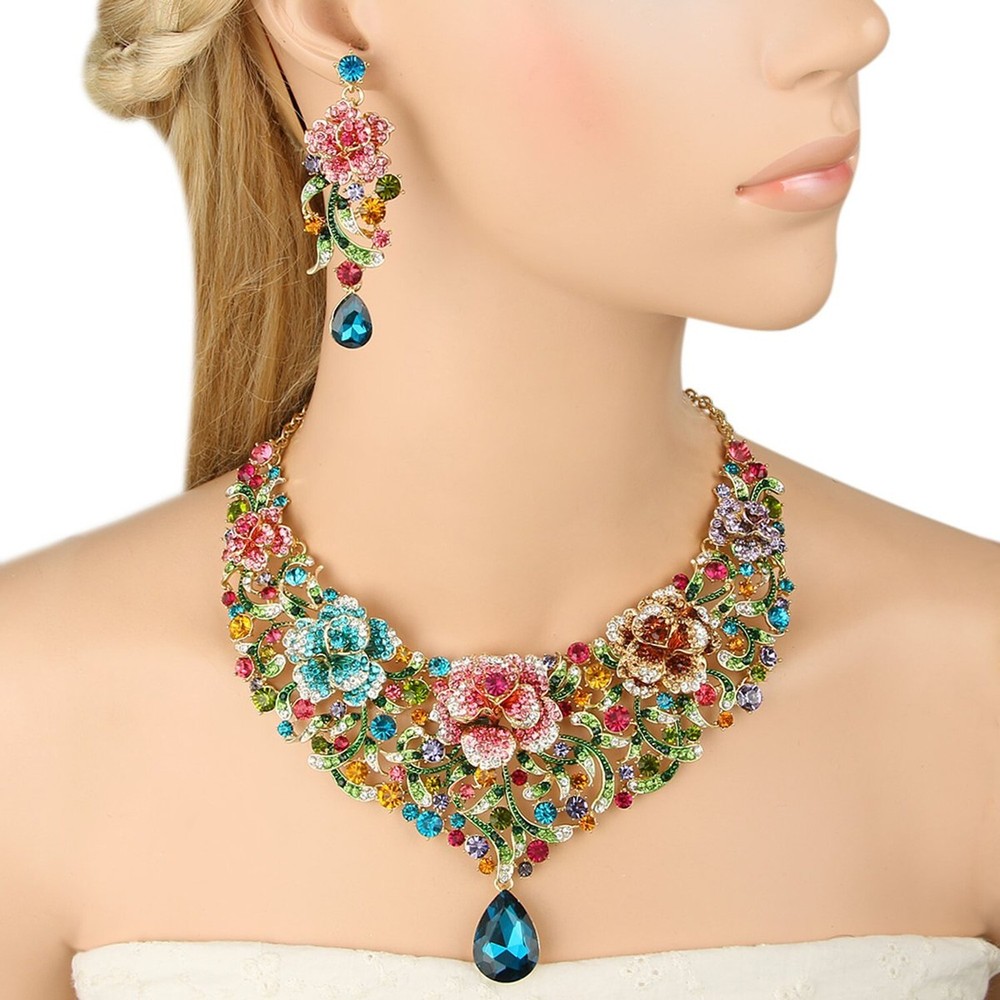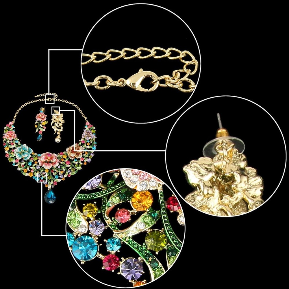 EVER FAITH Women's Rhinestone Crystal Enamel Rose Flower Vine Tear Drop Necklace Earrings Set Product Details Color: Multicolor Gold-Tone Brand: EVER FAITH MPN: N05644-6A UPC: Does not apply EAN: Does not apply Package Dimensions : 4 x 2 x 2 inches; 6.77 ounces Department : womens Date First Available : April 6, 2017 Manufacturer : EVER FAITH Brand, Seller, or Collection Name: EVER FAITH Metal stamp: Not stamped Metal: alloy Material: Crystal Gem Type: Crystal Chain: Rolo Clasp: Lobster Clasp Number of stones: 25 Model number: N05644-6A Classic, glamorous and spectacular design will make you an instant centre of attraction.