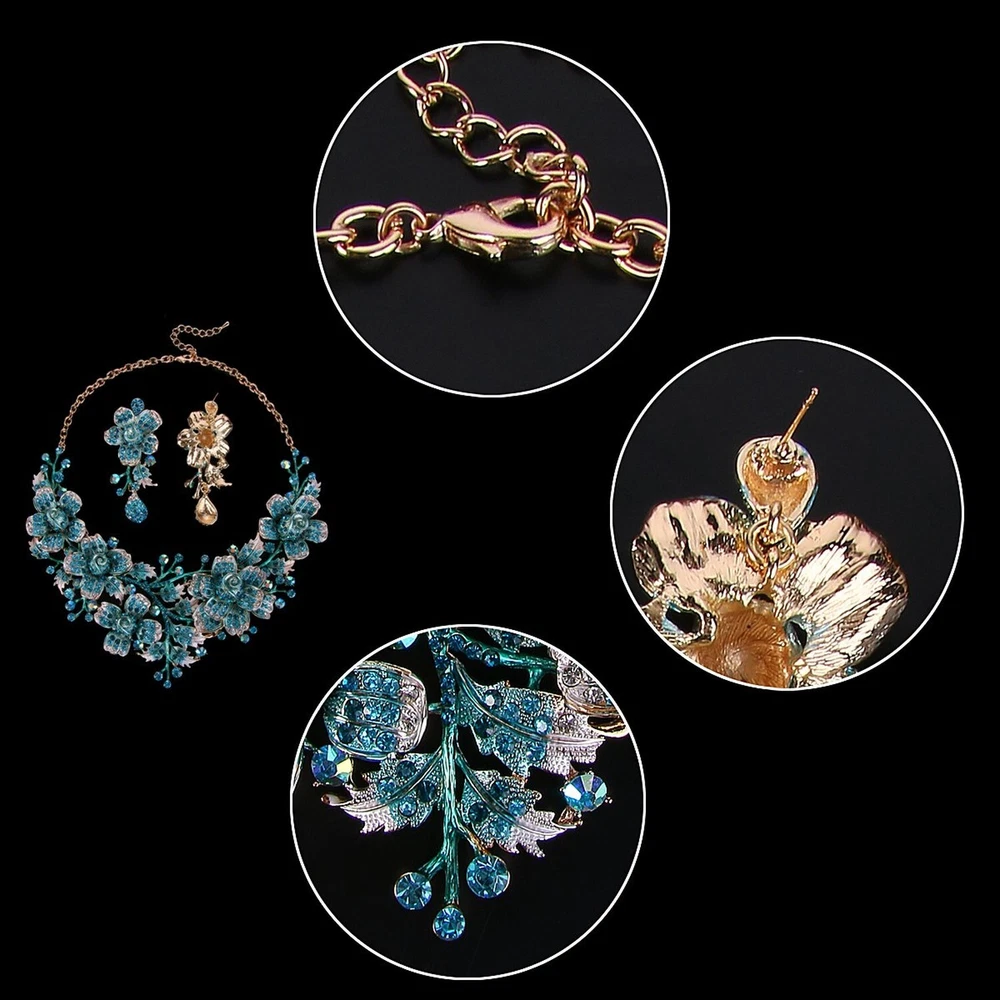 EVER FAITH Women's Crystal Elegant Flower Leaf Bridal Necklace Earrings Set Product Details Color: Light Blue Gold-Tone Brand: EVER FAITH MPN: Does not apply UPC: Does not apply EAN: Does not apply Package Dimensions : 4 x 2 x 2 inches; 8.04 ounces Department : womens Date First Available : July 21, 2018 Manufacturer : EVER FAITH Brand, Seller, or Collection Name: EVER FAITH Metal stamp: Not stamped Metal: alloy Material: Crystal Gem Type: no gemstone Chain: Rolo chain Clasp: lobster-claw clasp Model number: N07995-3A This graceful and beautiful fashion jewelry is truly an eye-catcher which will help you draw admirations on your any occasion.