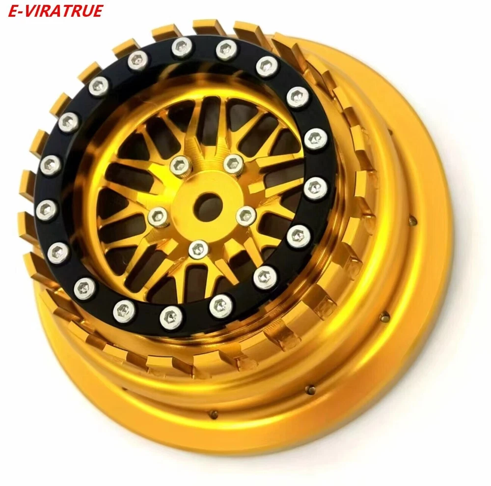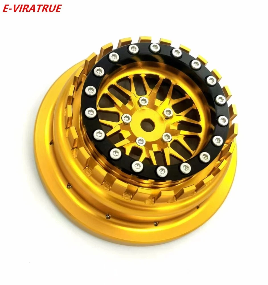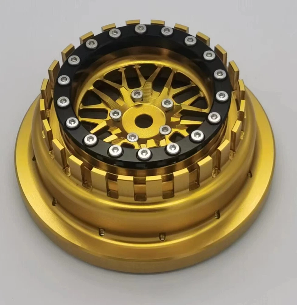 1.The upgrade parts are made of aluminum by CNC 3D processed, by adopting whole shaped technology, the products have the characteristic of high intensity and durability. 2. The aluminum wheel's hex is 17mm, t he aluminum wheels' distance offset is 12mm, it weighs 151.2 grams. 3. The aluminum wheel fits proline HYRAX tire PL#10163. 4. The aluminum wheel color: Gold, Lock rings color: Black. 5. The aluminum wheel is easy to assemble without sticking glue.
