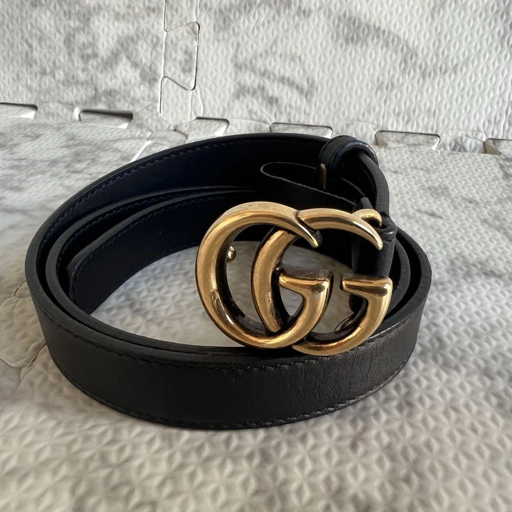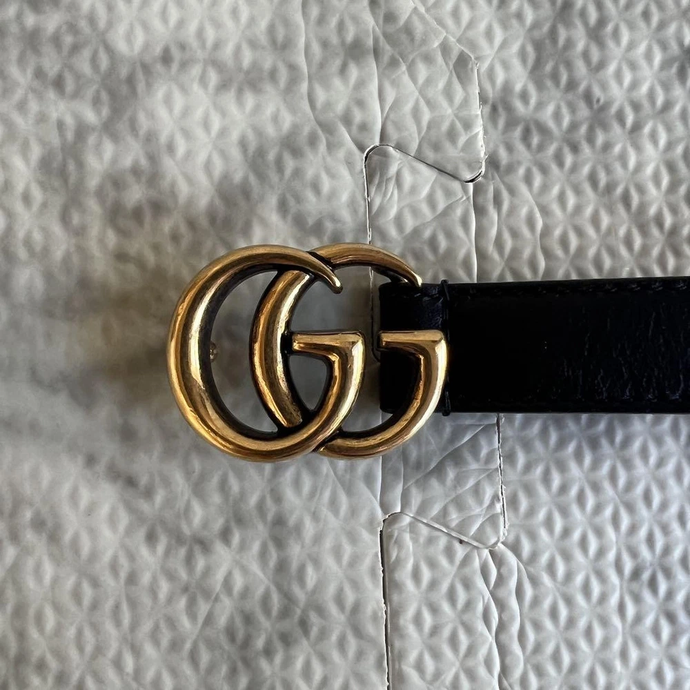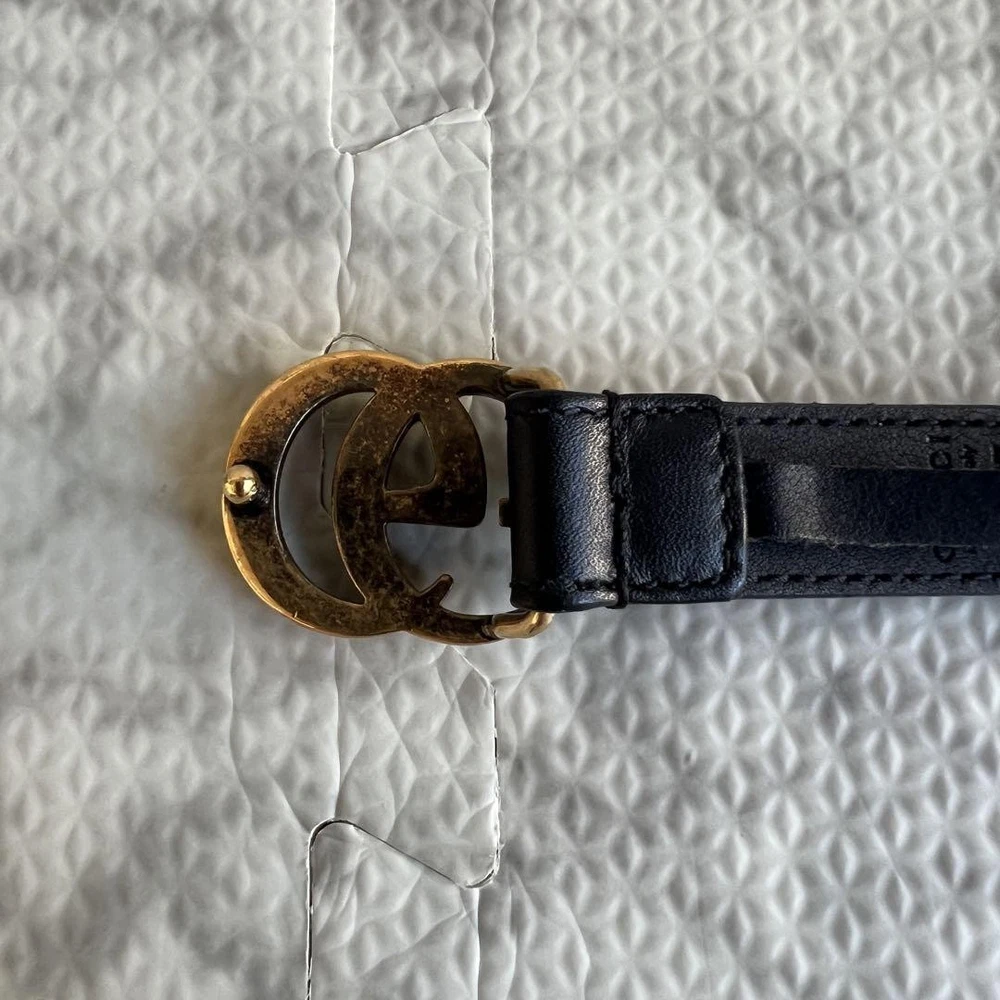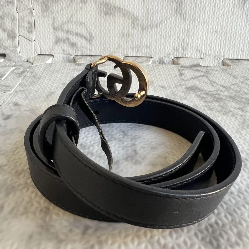 1. Absolutely love this Gucci Marmont belt! The gold and black GG logo adds a luxurious touch, and the leather feels high-quality. Perfect size with multiple hole options for a great fit. Arrived in flawless condition—looks brand new! Authentic and stylish, definitely worth the purchase. Highly recommend!