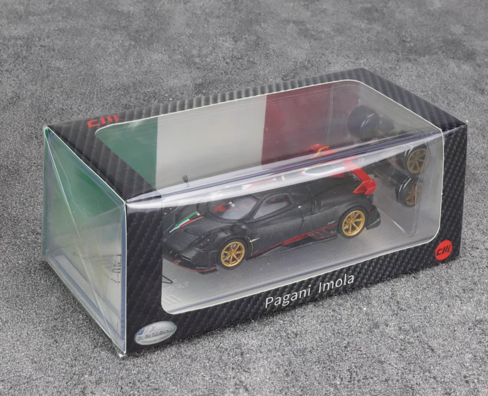 EY CM 1:64 Black Carbon Gold Rims Imola Racing Sport Model Diecast Metal Car New