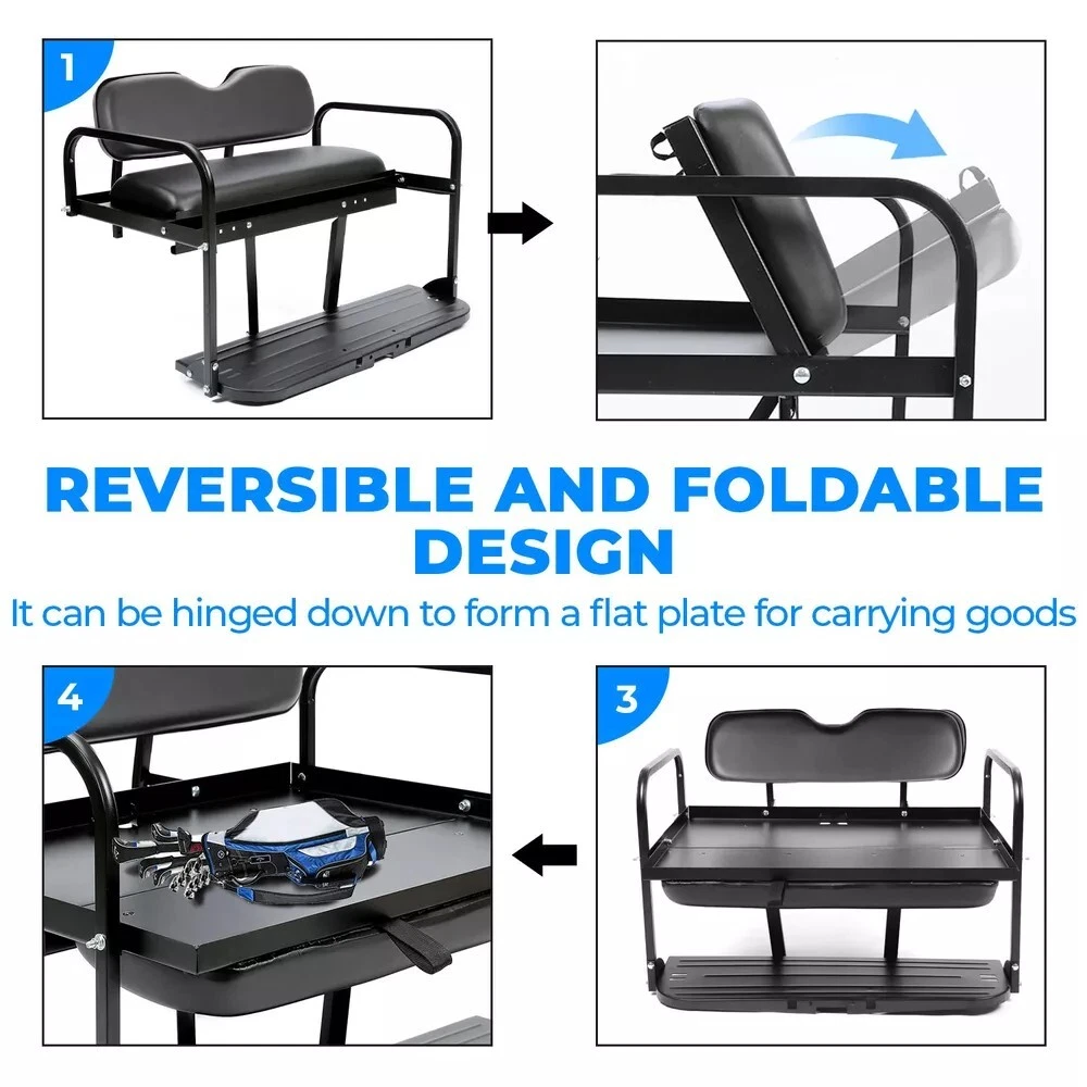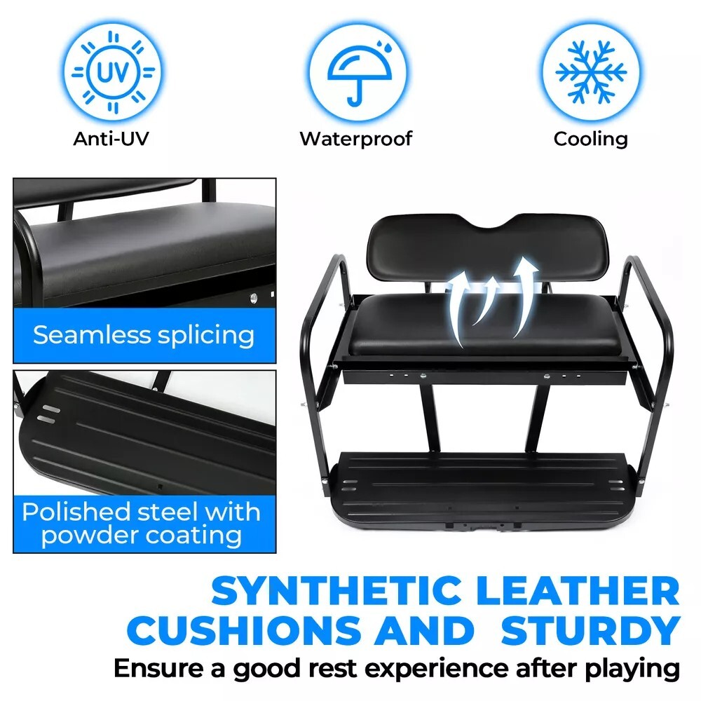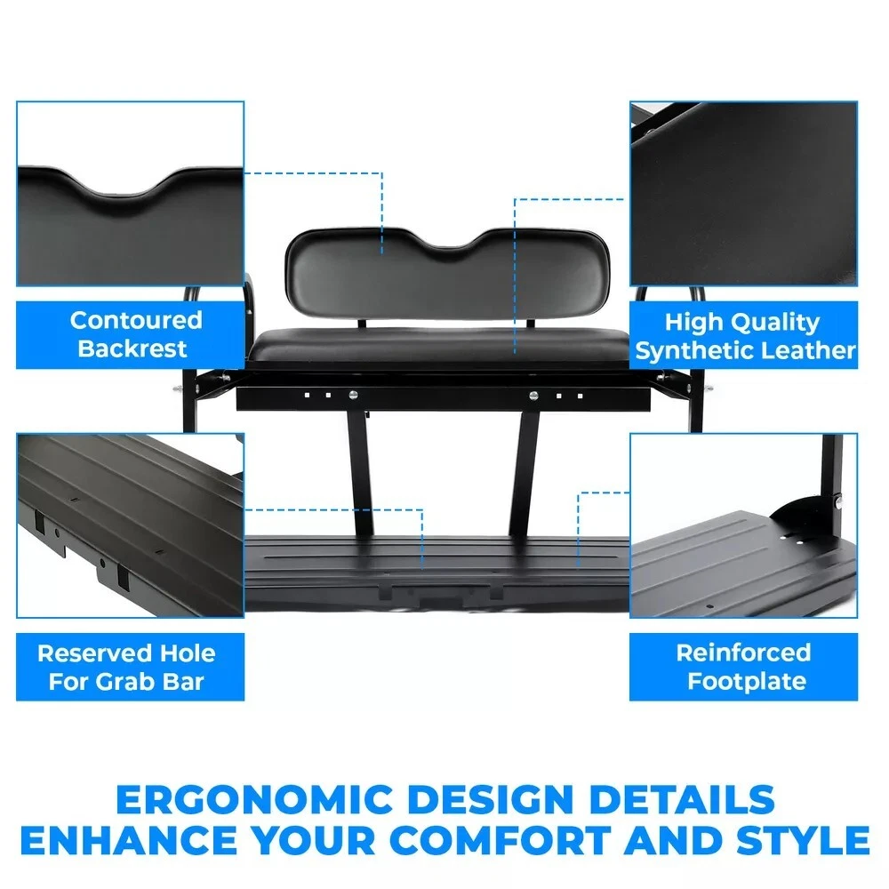 This golf cart seat kit is a fantastic upgrade—sturdy steel frame with rust-resistant powder coating and comfy synthetic leather. Easy to install with included hardware and instructions, it fits EZGO Marathon pre-1994 perfectly. The sleek black design looks sharp, and the lightweight build doesn’t sacrifice durability. A great value for the quality!