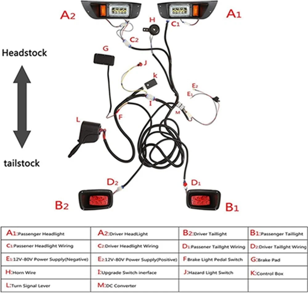 SPECIFICATION Name: LED Light Kit Condition: Brand New Compatible with EZGO TXT 1996-2013 Gas or Electric Model Kit Includes: 2 X Bright LED Headlights 2 X LED Tail Lights 1 X Horn, 1X Standard Turn Signal Switch, 1X Safety Hazard switch, 1X brake pedal, 1X controller, 1X Wiring Harness, 1X Fuse Harness, 1X installation manual FEATURE 1. Perfect Fit for your Gas/Electric Golf Cart Our state-of-the-art LED light kit is tailor-made for and compatible with EZGO TXT 1996-2013 Gas/Electric Vehicles, featuring an automatic turn signal shutdown after 28 seconds to prevent any potential driving hazards. 2. Comprehensive Kit for Better Lighting Our Full LED Light Kit includes a bumper-mounted amber LED turn signal headlight, two LED tail lights, a horn, wiring harness, fuse harness, standard turn signal switch, steering wheel cover, hazard switch, brake pedal, controller, and installation manual. 3. Street Legal and Golf Course Approved Our Full LED Light Kit is street legal and golf course approved, providing brighter lighting for your golf cart and making it perfect for daily use. 4. Easy Installation with Detailed Instructions Our product comes with detailed installation instructions and plug-and-play design for easy installation, making it a perfect fit for any DIY enthusiast. 5. Unique Features for Extra Safety With features such as automatic turn signal shutdown, flashing tail lights when the brake is applied, and flashers that stay on even when the turn signal is used, our Full LED Light Kit provides extra safety measures for any driver. COMPATIBILITY Compatible with EZGO TXT 1996-2013 Gas or Electric Model Note These are aftermarket lights and are not guaranteed to fit into existing cut outs. The OEM light kit has a larger cut out. Make sure the cut size of your Golf Cart is as same as us. If your golf cart is 36V or 48V, then you must need a 36V-12V or 48V-12V reducer (the set does not include a reducer) RETURNS AND EXCHANGES Please Do Not click "Return this item" in any situation. Because sometimes it will spend more time to resolve the issue,pls contact us via ebay message that is the fastest way to solve any problem for you; All NON-Seller Mistake returns for refund are subject to 20% re-stocking fee and buyer should pay for the return shipping fee and handle fee.(For example,you brought wrong item or cancelled order after item was shipped); All return products should be in brand new state with all accessories included; Note: No returns or exchanges once product has been installed on the vehicle. SHIPMENT We will ship all orders asap. from Texas via USPS or UPS.( No service on Weekend and public holidays); No pick-up service. WARRANTY AND FEEDBACK Customer satisfaction is very important to us and our feedback rating reflects this satisfaction. If you have any question or concern, please contact us via ebay message; We fully guarantee customers an exchange or refund within 30 business days of receipt if item DOA (damage on arrival); Warranty excludes normal product lifetime wear-out, wear and tear or abuse; Warranty does not apply to conditions resulting from misuse, abuse, negligence, accident, improper application, improper installation or alteration; For malfunction products under warranty period,please contact our customer service via EBay Message.