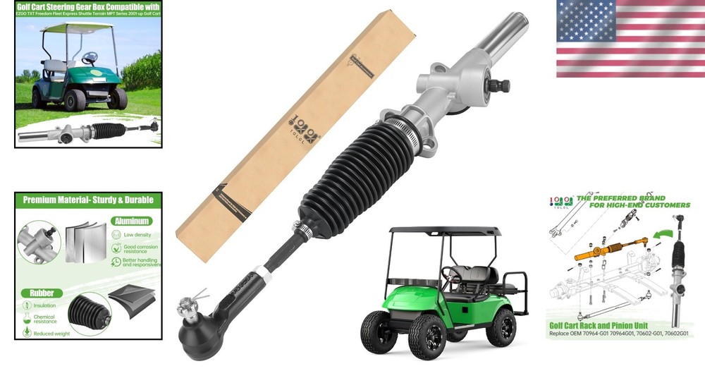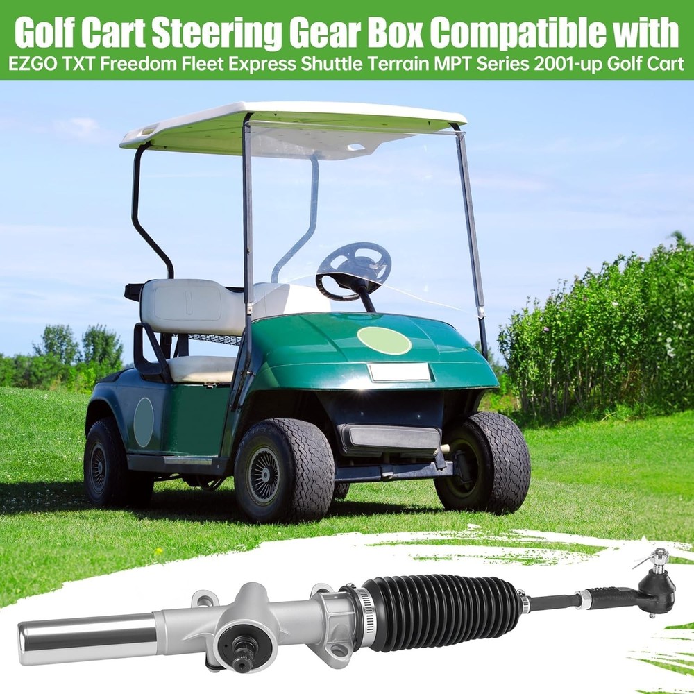 EZGO TXT Steering Gear Box Assembly 2001-Up - Durable OEM Replacement Part ‹ › ‹ › ‹ › ‹ › ‹ › ‹ › ‹ › ‹ › ‹ › EZGO TXT Steering Gear Box Assembly (2001-Up) Durable OEM Replacement Part Product Overview: Enhance the performance and safety of your EZGO TXT, MPT golf cart with our Steering Gear Box Assembly designed specifically for electric and gas vehicles from the 2001 and onwards. This aftermarket replacement is meticulously crafted to meet or exceed OEM specifications, ensuring your cart operates at its best. Key Features: Compatible with EZGO TXT and MPT models from 2001 and later. Direct replacement for OEM# 70964-G01, 70964-G02, and 70602-G01. Complete steering rack and pinion gear box assembly included. Installs easily with basic hand tools within 30-45 minutes. Durable construction designed to offer longevity and reliability. Ensure proper grease application to tie rod ends after installation. For optimal steering alignment, make sure your steering wheel and tires are pointed straight before tightening your steering joint. Why Choose Our Steering Gear Box Assembly? When it comes to ensuring that your golf cart steers smoothly and safely, investing in a high-quality steering gear box is essential. Our EZGO TXT Steering Gear Box Assembly not only guarantees an effortless operation but also provides the peace of mind that comes with an OEM-quality replacement part. With straightforward installation and outstanding durability, you can count on us to restore your golf cart's steering to its glory. Don't let steering issues affect your ride—upgrade to our reliable Steering Gear Box Assembly today! Shipping Free & Fast Shipping - We offer free shipping to most of the USA with a normal delivery time of 3-7 days. However, due to the current situation, additional delivery time (up to 3 weeks) may be required for some items. Alternative Carriers - We may use alternative carriers (e.g. USPS, FedEx, UPS, etc.) to ensure your package arrives safely and on time. Due to the use of multiple carriers, we are unable to provide a tracking number automatically. Handling Time - Orders are processed and shipped within 1-2 business days of receiving cleared payment. Shipping Restrictions - Shipping to Alaska, Hawaii, Puerto Rico, Guam, and other US territories may incur shipping charges or delivery restrictions. Please contact us before ordering, or your order can be refunded/cancelled. State Restrictions - There may be restrictions based on your state of purchase. For example, certain items may not be shipped to California due to state regulations. Contact for Tracking Updates - If you require tracking updates or have any concerns about the delivery of your order, please feel free to contact us, and we will be happy to assist you. Return 30-Day Hassle-Free Returns - We want you to be completely satisfied with your purchase. If you are not, you can return the item within 30 days of receiving it for a full refund or exchange. Easy Return Process - To start a return, simply contact us and we will provide you with a prepaid return shipping label and detailed instructions. Restocking Fee - There are no restocking fees for returns. However, the buyer is responsible for return shipping costs if the return is not due to a seller's error. Refund Processing Time - Refunds will be processed within 5 business days of receiving the returned item in its condition. Payment We accept all major credit cards, PayPal, and Apple Pay for your convenience. Your payment information is secure and encrypted to ensure a safe and seamless transaction. Please complete your payment within 3 days of purchase to avoid any delays in shipping. Feedback Your feedback is extremely important to us. We strive to provide the best products and customer service possible. If you are satisfied with your purchase, please take a moment to leave us a positive review. If you have any concerns or issues with your order, please contact us before leaving negative feedback. We are committed to resolving any problems and ensuring your satisfaction. Contact Us If you have any questions or concerns, please feel free to out to our customer support team. You can contact us through the eBay messaging system. We are available Monday to Friday, 9:00 am to 5:00 pm EST, and we will do our best to respond to your inquiry within 24 hours. Buy it now and enjoy a pleasant shopping experience! Manufacturer Part Number: Golf Cart Steering Gear Box Unit Quantity: 7.25 Compatible Make: Golf Cart Steering Gear Box Compatible Model: Golf Cart Steering Gear Box Part Type: Golf Cart Steering Gear Box