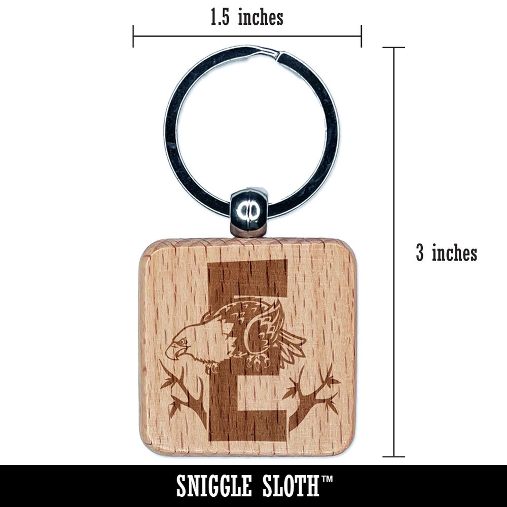 Eagle Engraved Wooden Alphabet Letter E Keychain Charm