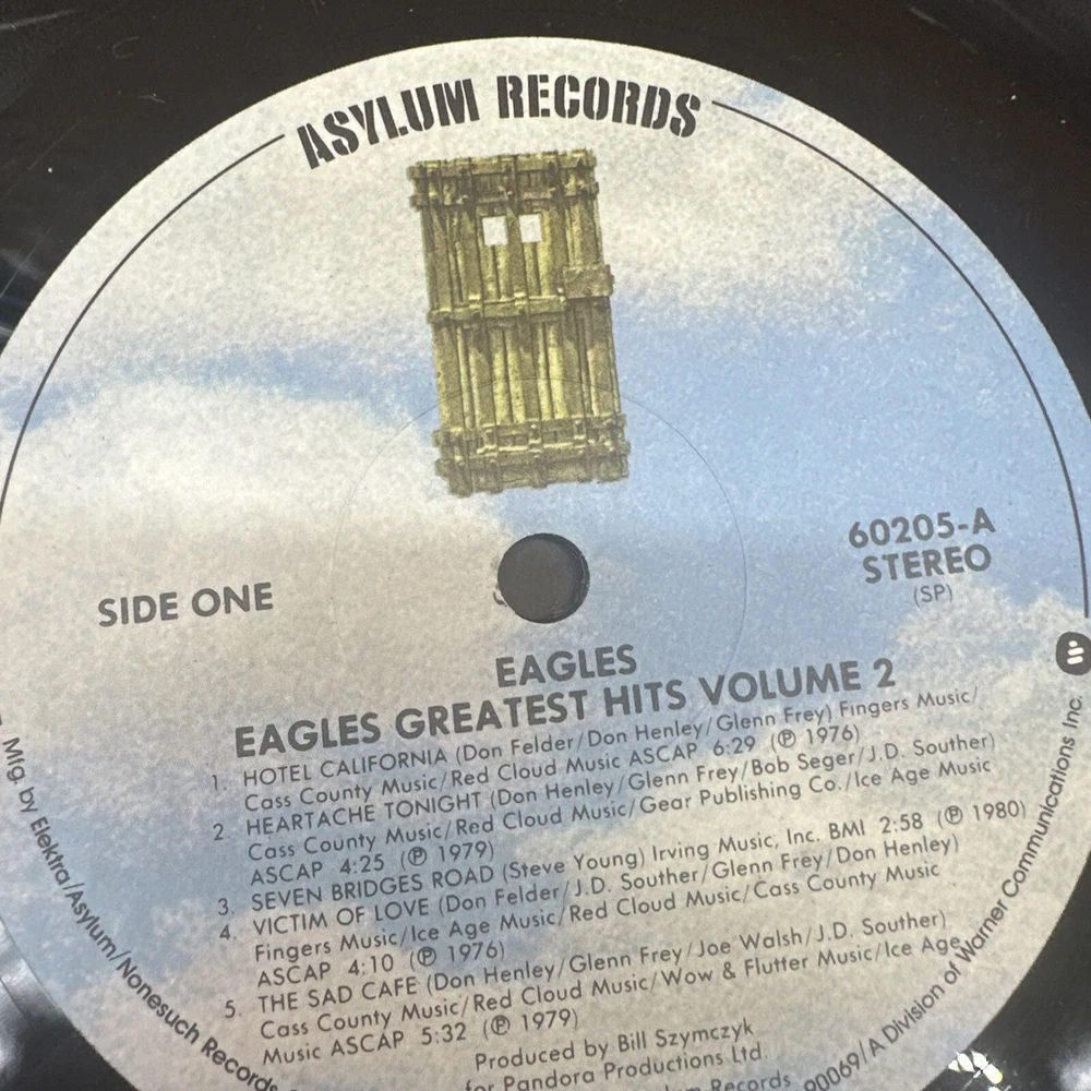 Genre: Country, Pop, Rock Record Size: 12" Color: Black Type: LP Speed: 33 RPM Artist: Eagles Record Label: Asylum Records Language: English Case Type: Cardboard Sleeve Material: Vinyl Features: FIRST PRESSING Release Title: Eagles Greatest Hits Volume 2 Edition: Greatest Hits, Reissue Country/Region of Manufacture: United States Release Year: 1982 Style: 1970s, Classic Rock, Country Rock Format: Record