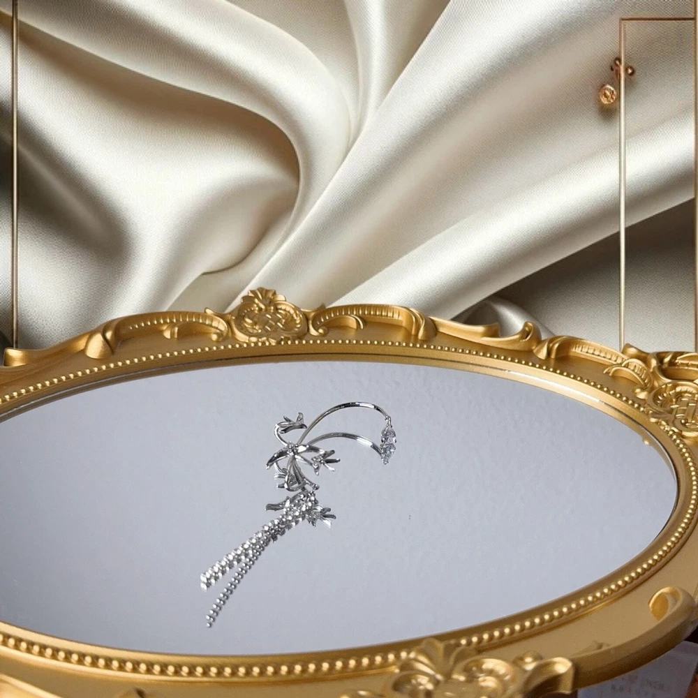 β¨ Exquisite Artistry: New Delicate Right Ear Clip with Swallow Accents β¨ Design: Right Ear | Details: Diamond-like Tassels, Swallow Climbers, Pear-Shaped Top Diamond | Color: Silver ποΈ Enchanting Swallow Motif: Elevate your style with this uniquely designed ear clip, adorned with three delicate swallow-shaped climbers. These intricate birds add a whimsical yet elegant touch, perfect for making a stylish statement. π Elegant Tassels & Pear-Shaped Diamond: The two long tassels, embellished with sparkling imitation diamonds, gracefully dangle, enhancing movement and allure. The piece is crowned with a pear-shaped imitation diamond, adding an extra dash of sophistication. πΏ No Piercing, No Problem: Specially designed for the right ear as a clip-on, it's ideal for anyone who desires the beauty of earrings without the need for piercings. π Pristine Condition: As a never-used accessory, this ear clip is in perfect condition, ready to become a highlight of your jewelry collection.