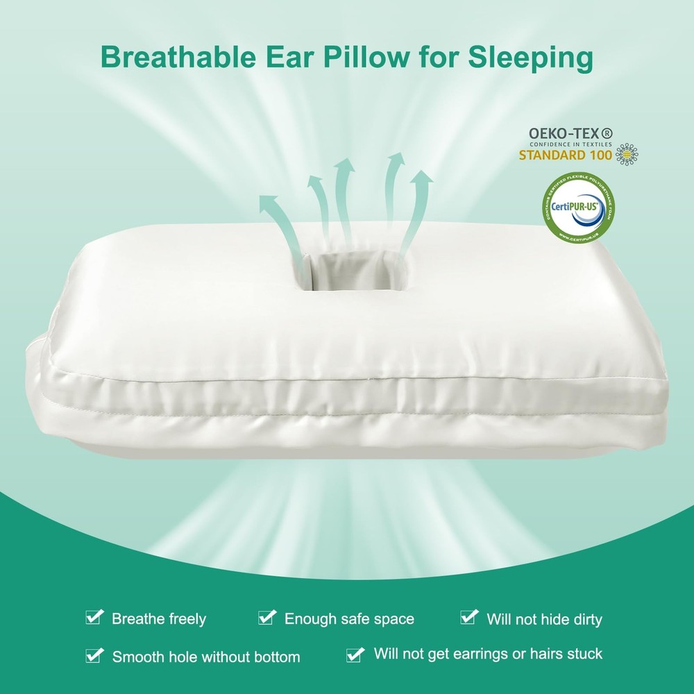 Ear Piercing Pillow - Breathable Big Ear Hole Pillow - with Satin Smooth Pill...