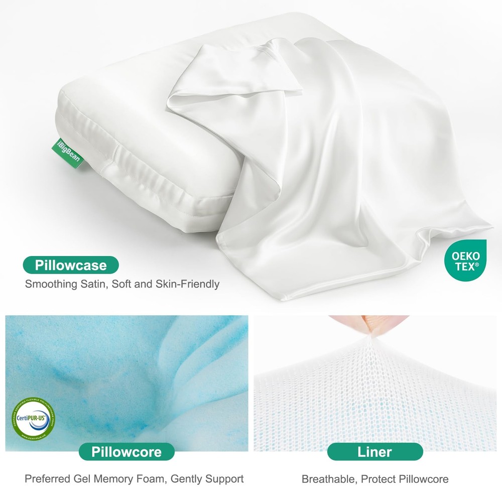 Weight: 1.37 Pounds Care Instructions: Machine Wash(Only Pillowcase) Fill Material: Gel Memory Foam Unit Count: 1.0 Model Number: Ib2856 Fabric Type: Satin Smooth Pillowcase Item Firmness Description: Medium Soft Target Use Body Part: Head Age Range Description: Adult Part Number: Ib2856 Size: 1 Ear Hole - 15.9''L X 11''W X 4''H gtin13: Does not apply Brand: Ibigbean UPC: Does not apply Style: Modern Pattern: No Color: White-Satin Model Name: Ear Pillow Type: Does not apply Package Dimensions LxWxH: 11.22x5.91x5.87 Inches Item Shape: Rectangular