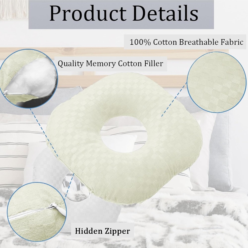 About this item PERFECT SIZE: The piercing pillow measures 9" the hole in the middle is a 3.5" circle. The hole in the middle of the pillow fits your ear perfectly, giving your painful ear a place to rest without the pain of pressure and rubbing. And this height is also suitable, you can use it alone or put it on other pillows, so you can find your comfort zone. SOFT AND COMFORTABLE: Our perforated pillows are made of 100% cotton breathable fabric and down and polyester mixed filling, down filling is better than regular cotton, reusable, you can machine wash and dry normally. ADJUSTABLE: The perforated pillow has an invisible zipper. Take some padding out of the pillow when it feels too hard, or add some padding when it feels too soft. EAR PAIN RELIEF: The pillow with a hole is helpful to reduce ear pressure while side sleeping, relieving ear pain, ear inflammation and pressure sores. APPLICABLE PEOPLE: Our pillow is great for anyone with multiple ear piercings, chondrodermatitis nodularis helicis new piercing, earrings/hearing amplifier/noise cancelling earbuds/headphones/earache/pain/tinnitus/vertigo. Great for piercing comfort. Fresh cartilage piercings pillows can eliminate the pain! Suits for those who had ear surgery work great for heals from surgery. Perfect for the piercing addict and a side sleeper. Suits for those who used to fall asleep is with earplugs.