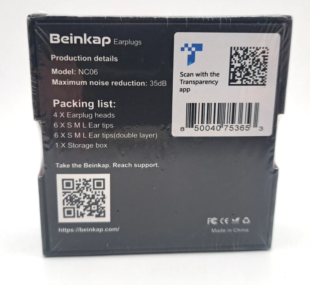 Beinkap Earplugs Model NC06 NEW SEALED 35dB Noise reduction Includes: 4 x Earplug Heads 6 x S M L Ear Tips 6 x S M L Ear Tips(Double Layer) 1 x Storage Box Ships USPS Mail FREE SHIPPING Thanks