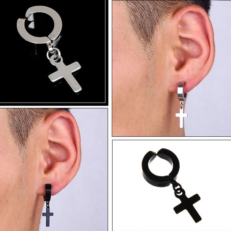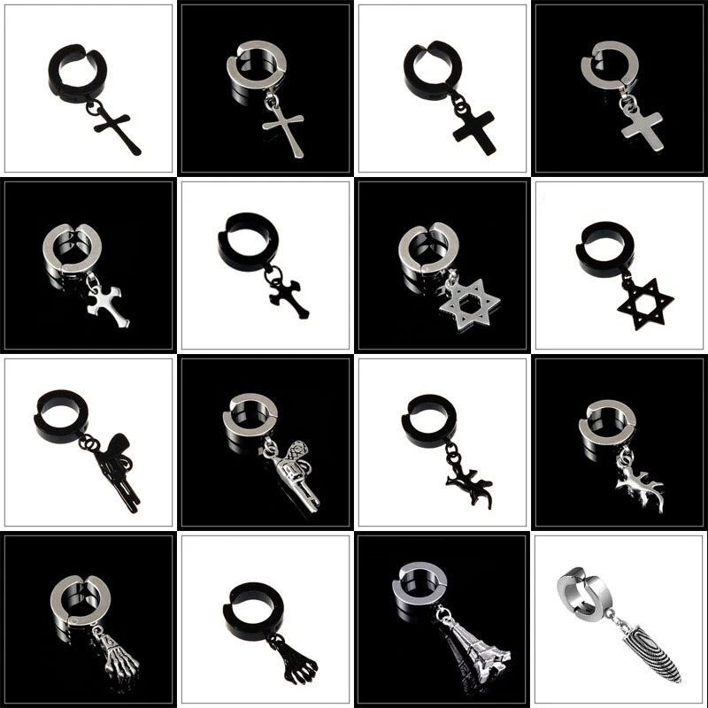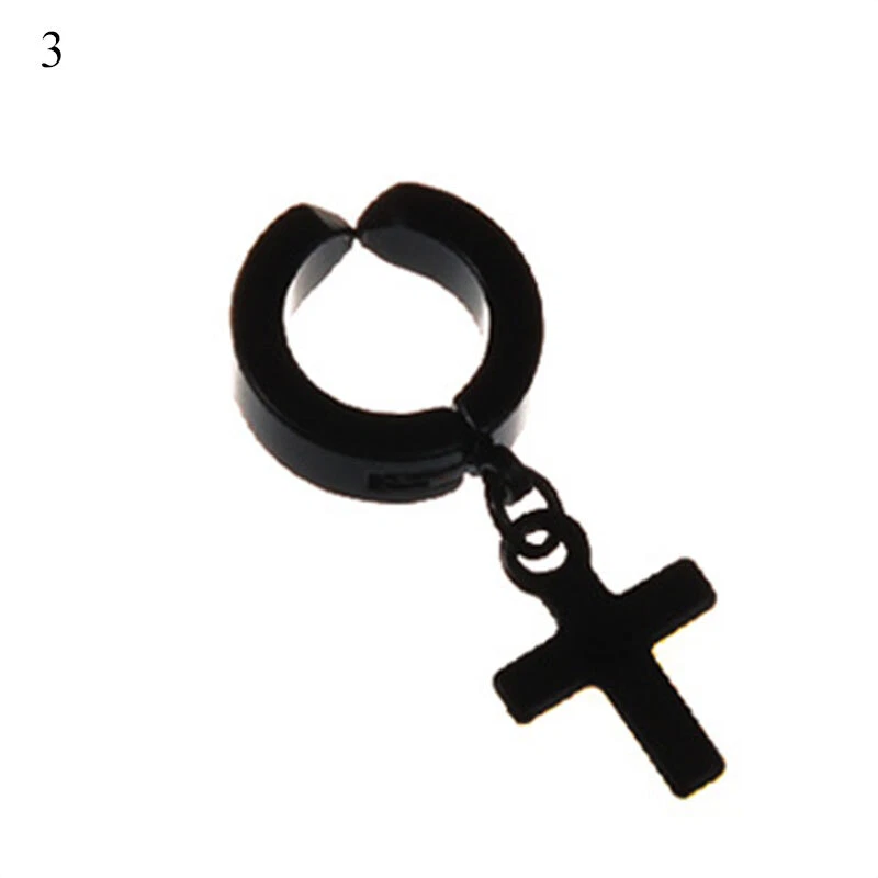 1PC Hiphop Punk Stainless Steel Star Cross Pendant Ear Clip No Piercing Earring Feature: 100% brand new and high quality. Description: Item Type:Earring Style:Fashion Material:Stainless Steel Color:Silver,Black Size:Inner Diameter 9mm/0.35inch Outer Diameter 13mm/0.51inch Packing:1PC Earring Note: Please allow1-2cm measuring deviation due to manual measurement. Due to the difference between different monitors, the picture may not reflect the actual color of the item. Thank you!