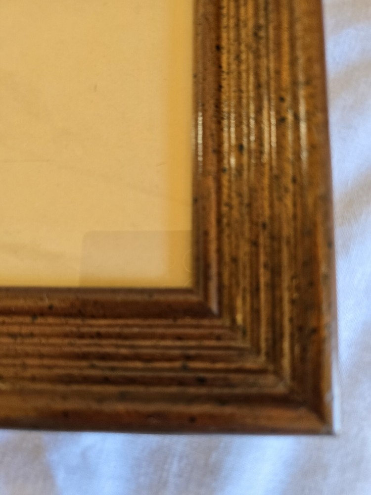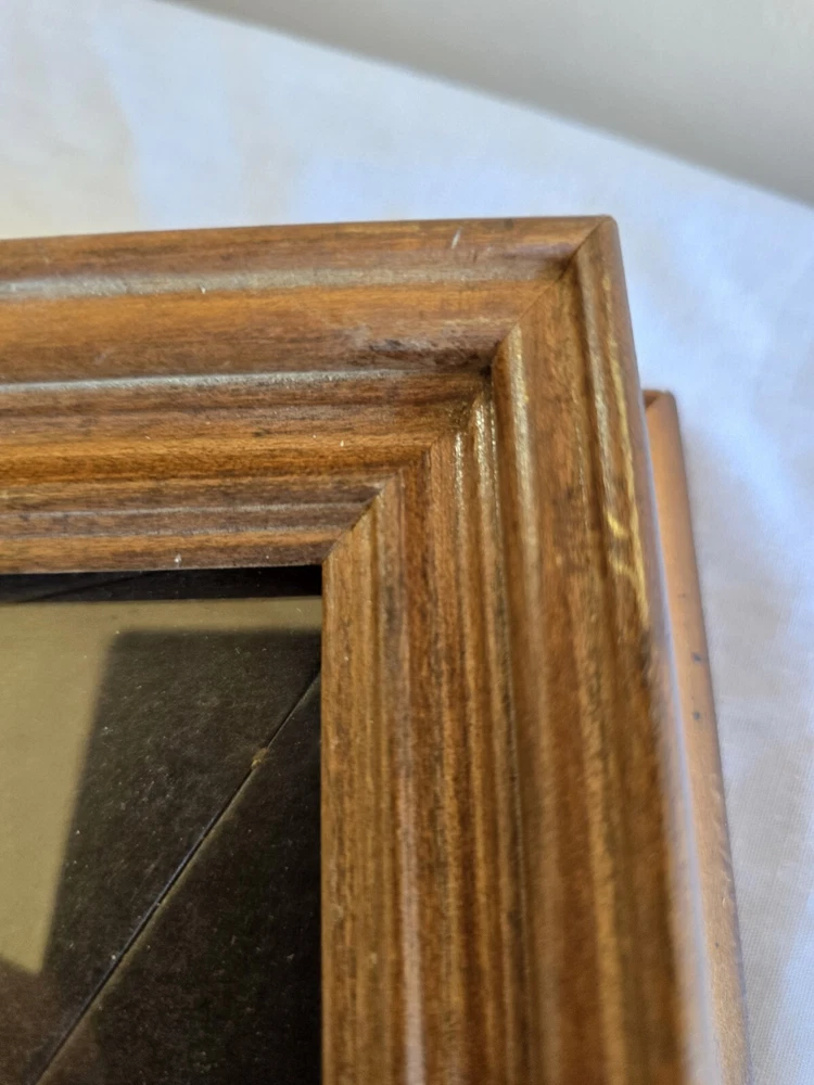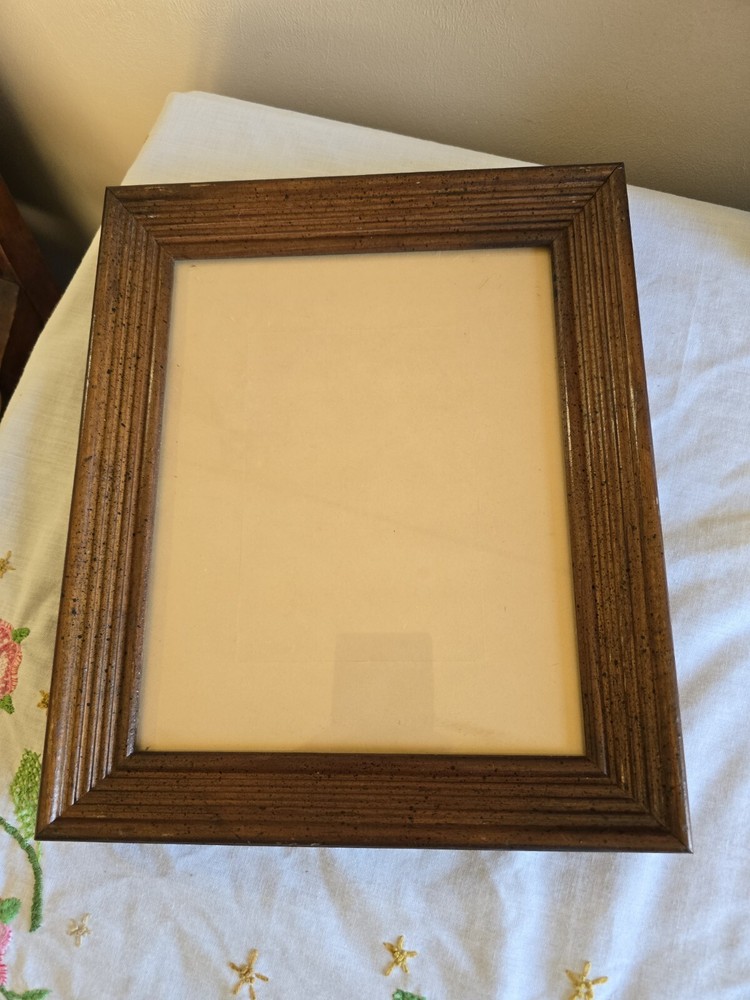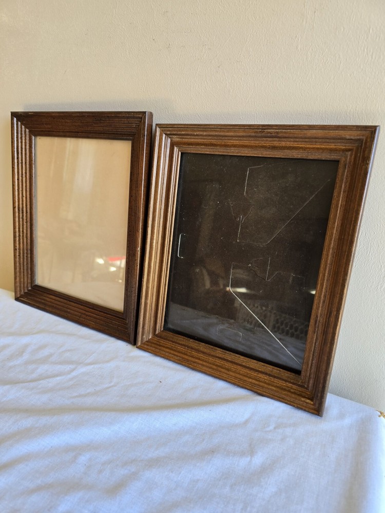 The frame have scratches. Both are the same size. 11-7/8 x 9-7/8 x 1-3/8 in 8 x 10 in 12-3/8 x 10-3/8 x 1-1/2 in 8 x 10 in